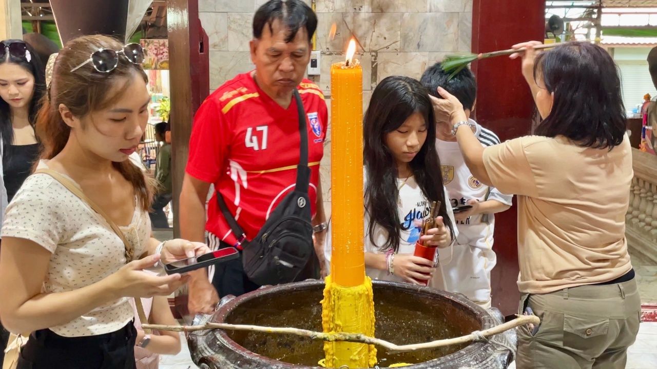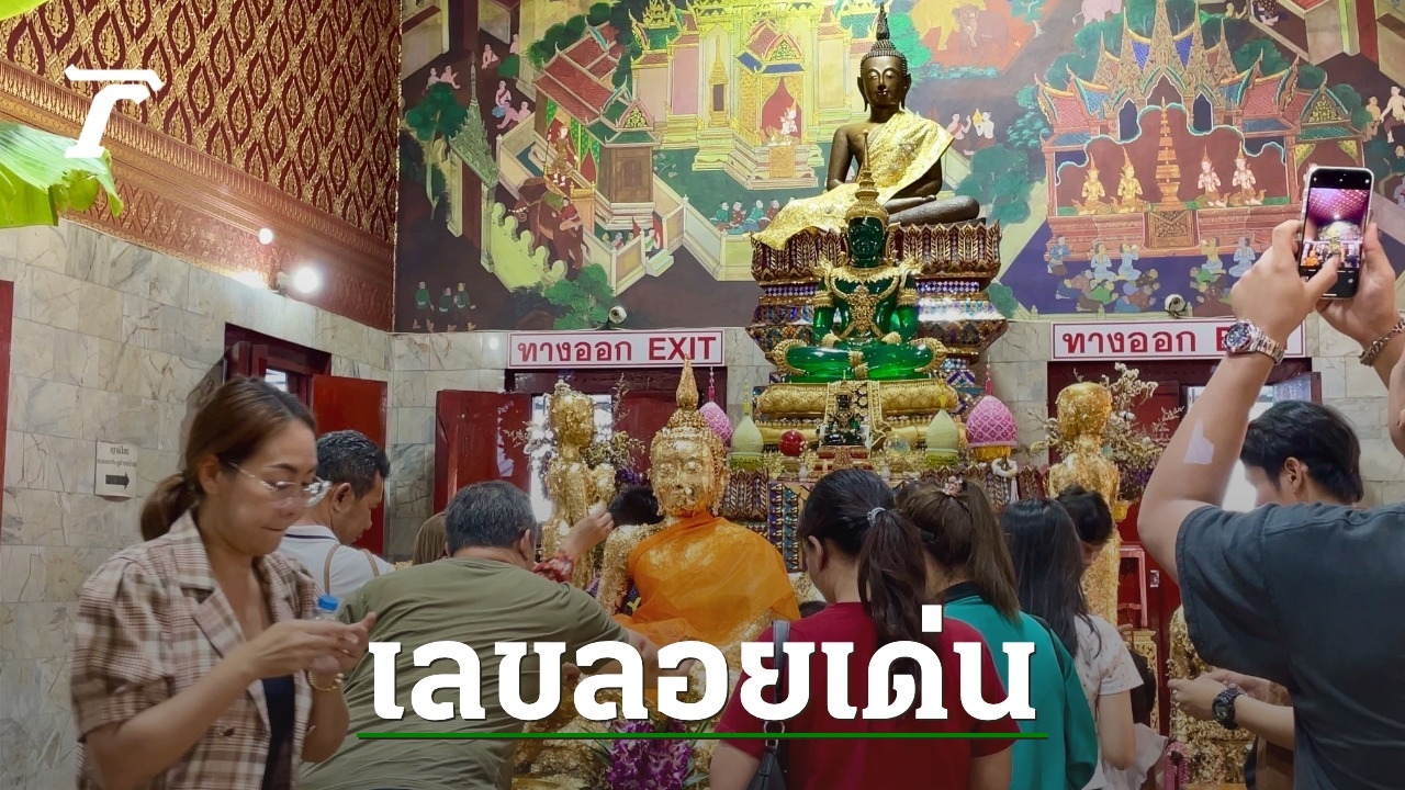 สาธุชนหลั่งไหล แห่ขอพร "หลวงพ่อปากแดง" ไม่พลาดส่อง "เลขเด็ด" ลอยเด่นในอ่างน้ำมนต์ หวังนำไปเสี่ยงโชคงวด 1/7/68