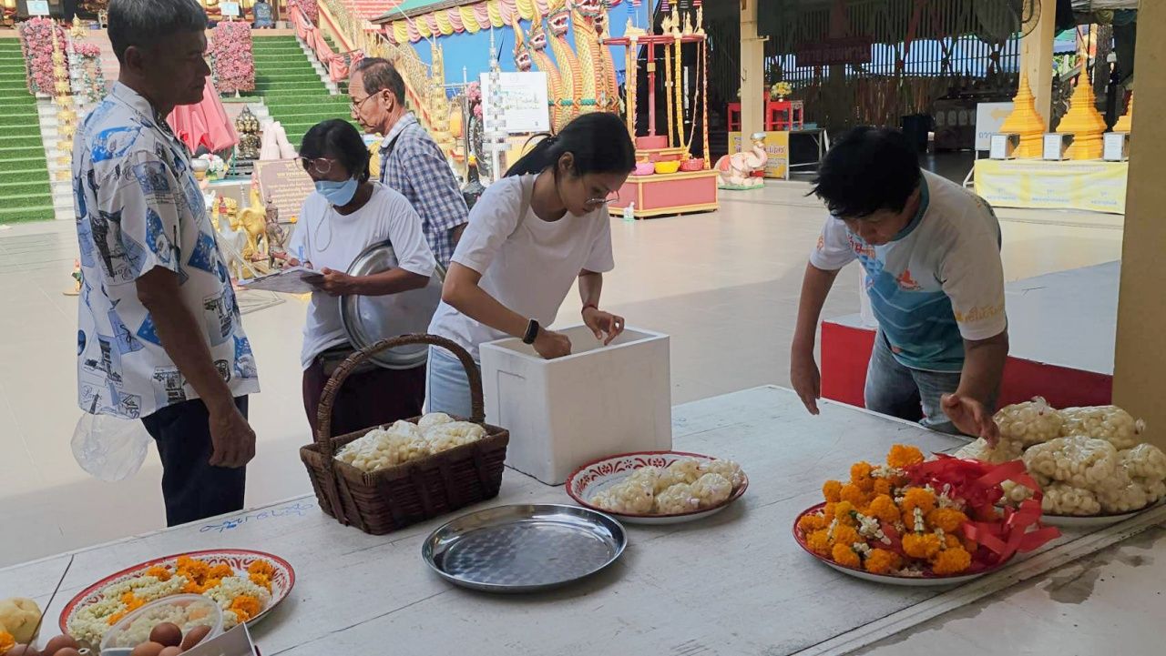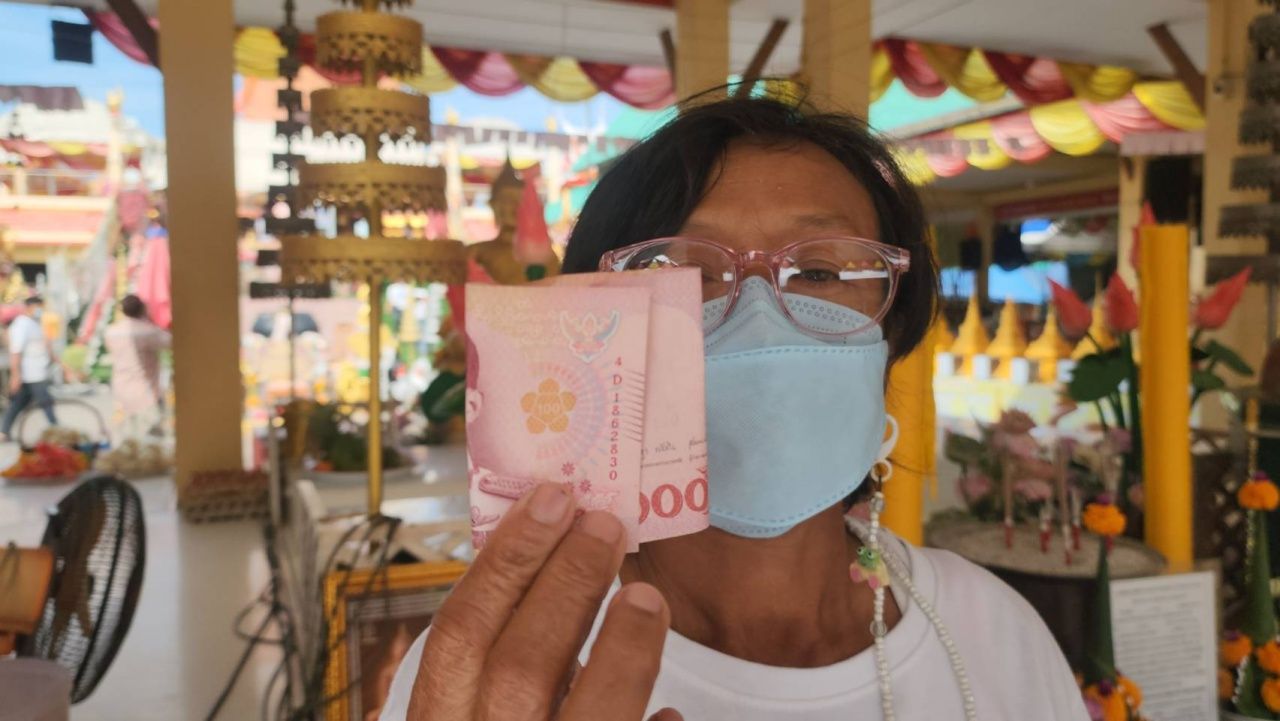 หญิงวัย 50 ปี นำของมาถวายแก้บน "หลวงพ่อสมหวัง" วัดกลางบางพระ จ.นครปฐม หลังลูกสอบติดเข้ารับราชการทหาร ก่อนกลับไม่พลาดขอพรอีกรอบ นำ "เลขเด็ด" ท้ายธนบัตรไปเสี่ยงโชค