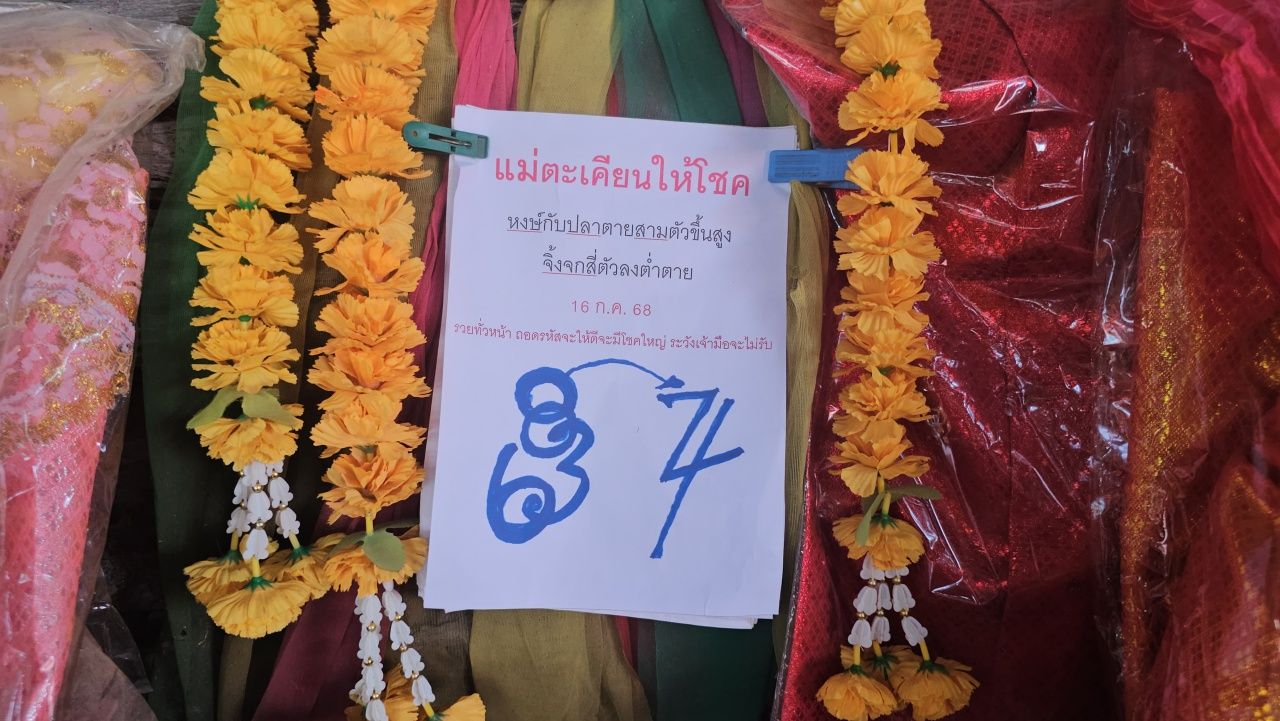 โดยงวดนี้พบว่า ในกระดาษติดอยู่ที่ลำต้นของแม่ศรีมณีทองมีข้อความว่า "หงส์กับปลาตายสามตัวขึ้นสูง จิ้งจกสี่ตัวลงต่ำตาย" พร้อมด้วยเลข 836 74 ซึ่งหลังจากนั้นหลายคนจะไปหาซื้อเลขเด็ดตามความชอบตามแผงขายลอตเตอรี่ต่อไป.