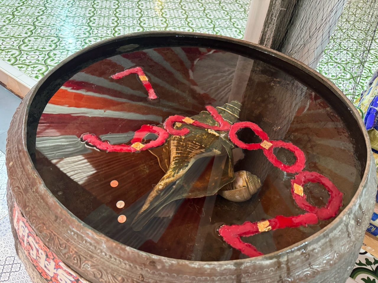 ก่อนกลับ น.ส.ณภัษฆ์ฌาร์ ยังได้ไปส่องเลขในอ่างน้ำมนต์บนศาลาบุญช่วยเพื่อนำไปเสี่ยงโชคในงวดต่อไป โดยเลขในอ่างน้ำมนต์ได้แก่เลข 0 1 2 7 8 9 โดยเลขทั้งหมดจะวนจับกันเรียกว่าเทวะบันดาล ซึ่งจะได้นำไปตีเลขเด็ด เพื่อเสี่ยงโชคในงวดวันที่ 16/8/68 นี้ด้วย