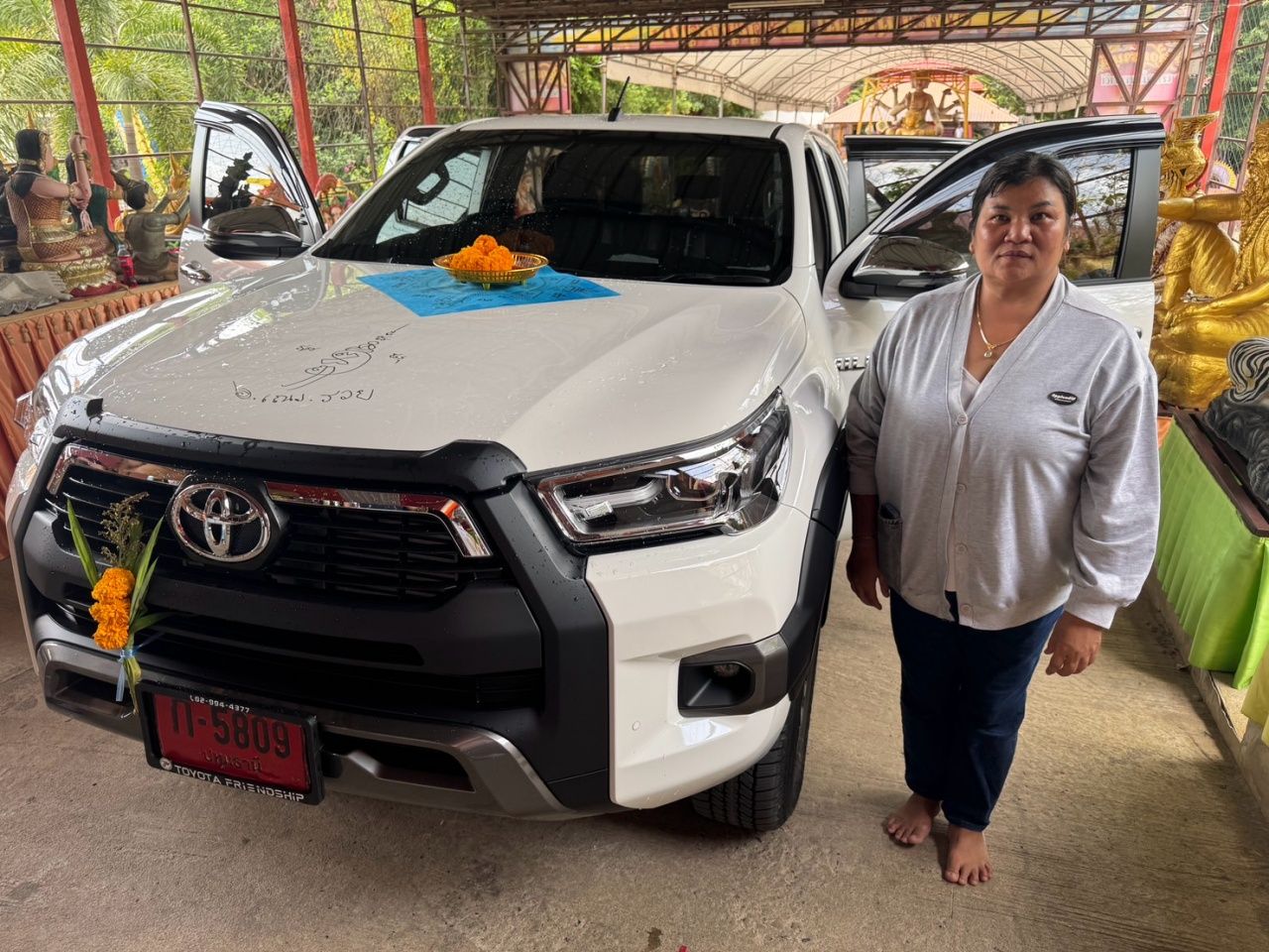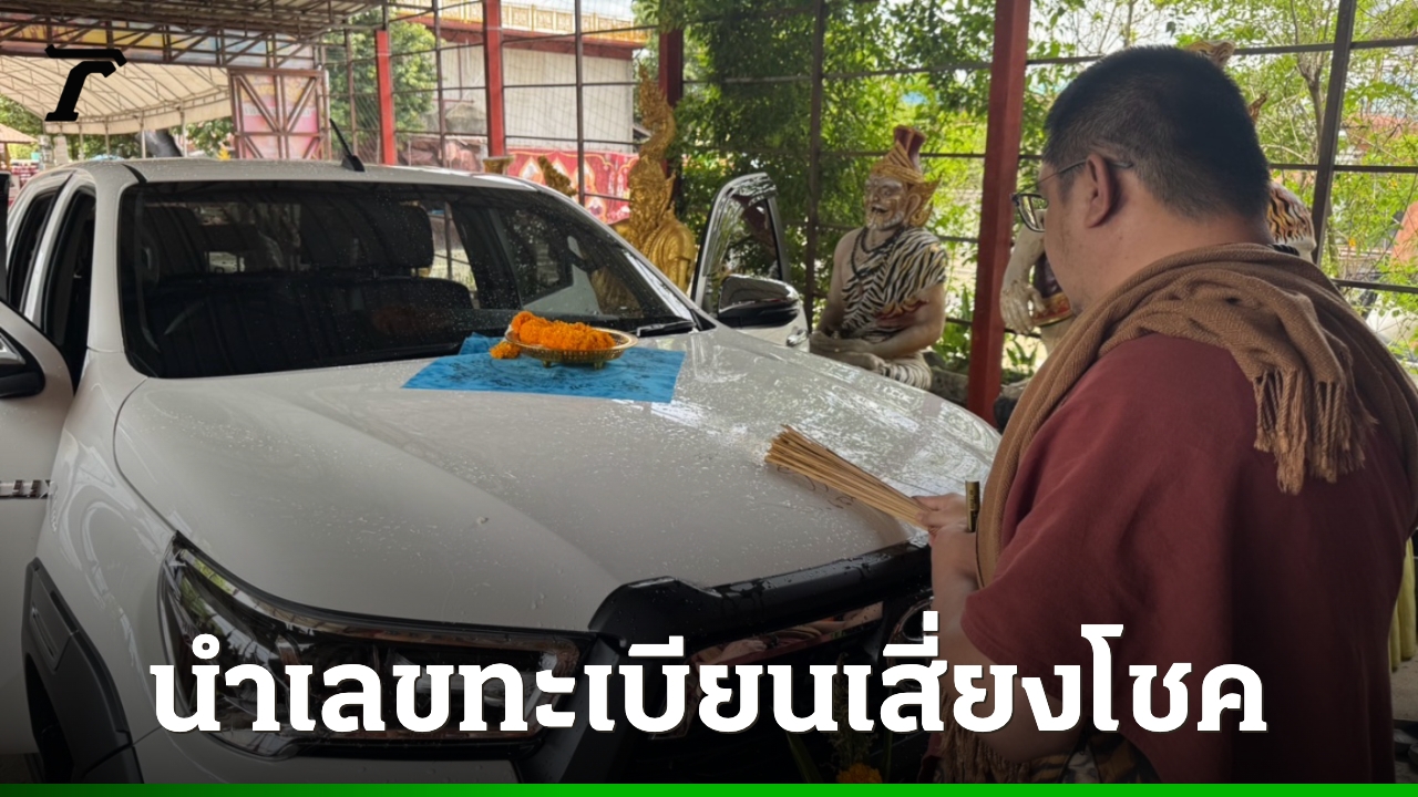 สาวนำรถกระบะป้ายแดง มาให้ฤาษีเณรเจิมเพื่อความเป็นสิริมงคล หลังมาขอโชคแล้วได้สมดังหวัง เตรียมนำทะเบียนรถไปเสี่ยงโชคงวด 16/8/68 นี้ด้วย