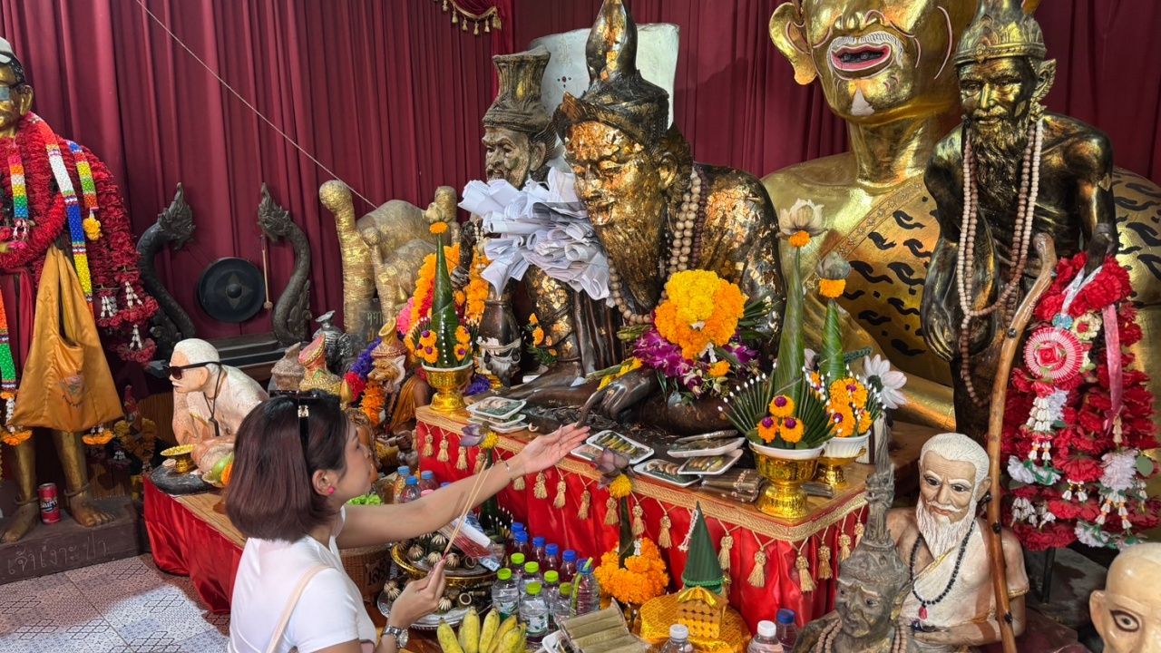 สาวเดินทางจากมาเลเซีย นำพวงมาลัยสีแดง-รถบังคับไฟฟ้ามาถวาย "กุมารทองเจ้าสัวเฮง" หลังขอพรออนไลน์แล้วได้โชค 2 งวดติด ไม่ลืมส่อง "เลขเด็ด" จากอ่างน้ำมนต์ไปลุ้นรวย 1/9/68