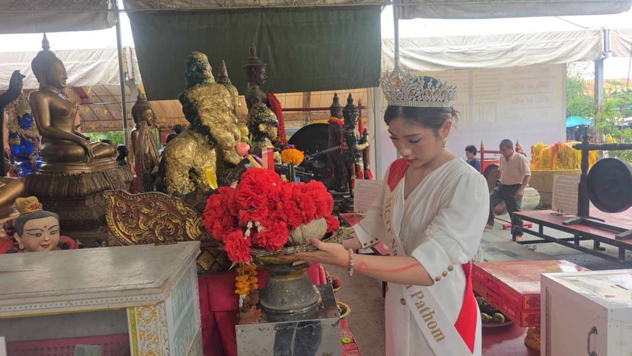 มิสไชนิสนครปฐม ลงยันต์ขอโชคปู่ฤาษี ขอพร "พระเงินพระทอง" วัดสว่างอารมณ์ จ.นครปฐม ไม่พลาดล้วงตะข้องมงคล นำ “เลขเด็ด” ไปฝากแฟนคลับงวด 1/9/68