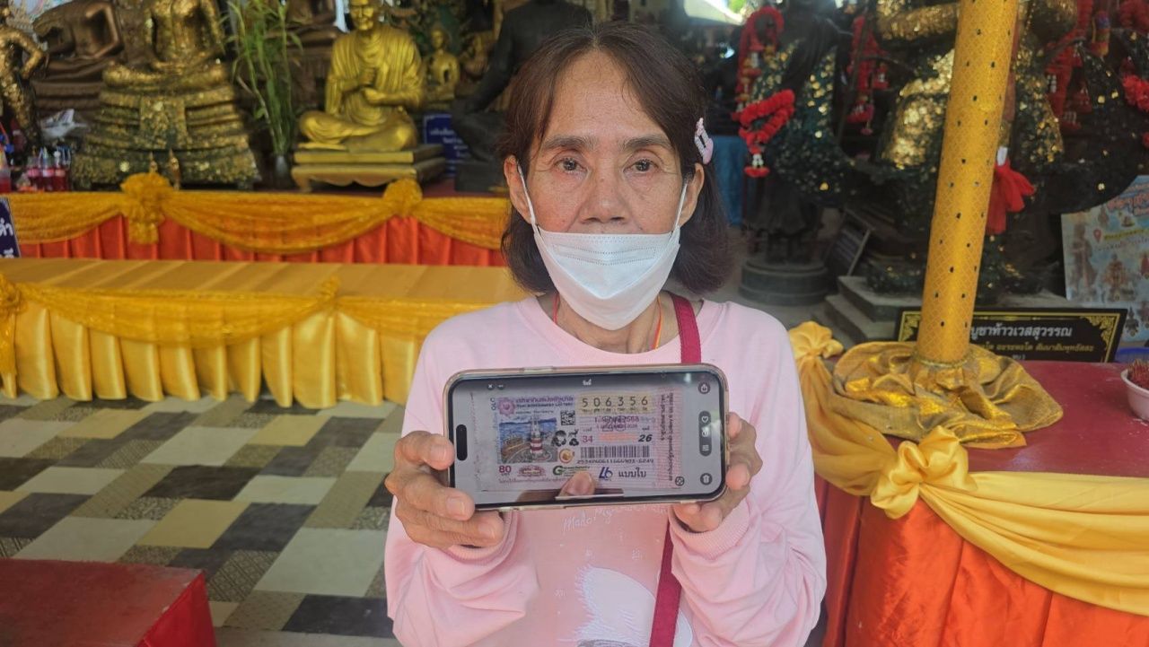 ก่อนวันหวยออกเมื่อวันที่ 1 ก.ย. 68 ตนมาทำความสะอาดที่วัด แม่ค้าลอตเตอรี่เรียกให้ตนเองซื้อ บอกว่างวดนี้ขายไม่ค่อยดี ขอให้ช่วยซื้อหน่อย จึงถามไปว่ามีเลข 56 ไหม เพราะเป็นเลขวันเกิดและเดือนเกิด แม่ค้าบอกมีใบเดียว แต่เป็นเลขหน้า 3 ตัว 506 ตอนนั้นมีเงินติดตัวแค่ 100 บาท คิดว่าจะซื้อดีหรือไม่ดี แต่ก็ตัดสินใจซื้อ วันรุ่งขึ้นหวยออกจึงเอาออกมาดู ปรากฏว่าถูกรางวัลที่ 1 บอกกับลูกและแม่ว่า ถูกรางวัลที่ 1 ทุกคนยังบอกว่าให้ตรวจให้แน่ใจ ก่อนจะกอดกันร้องไห้ และพากันนำสิ่งของมาแก้บนในวันนี้