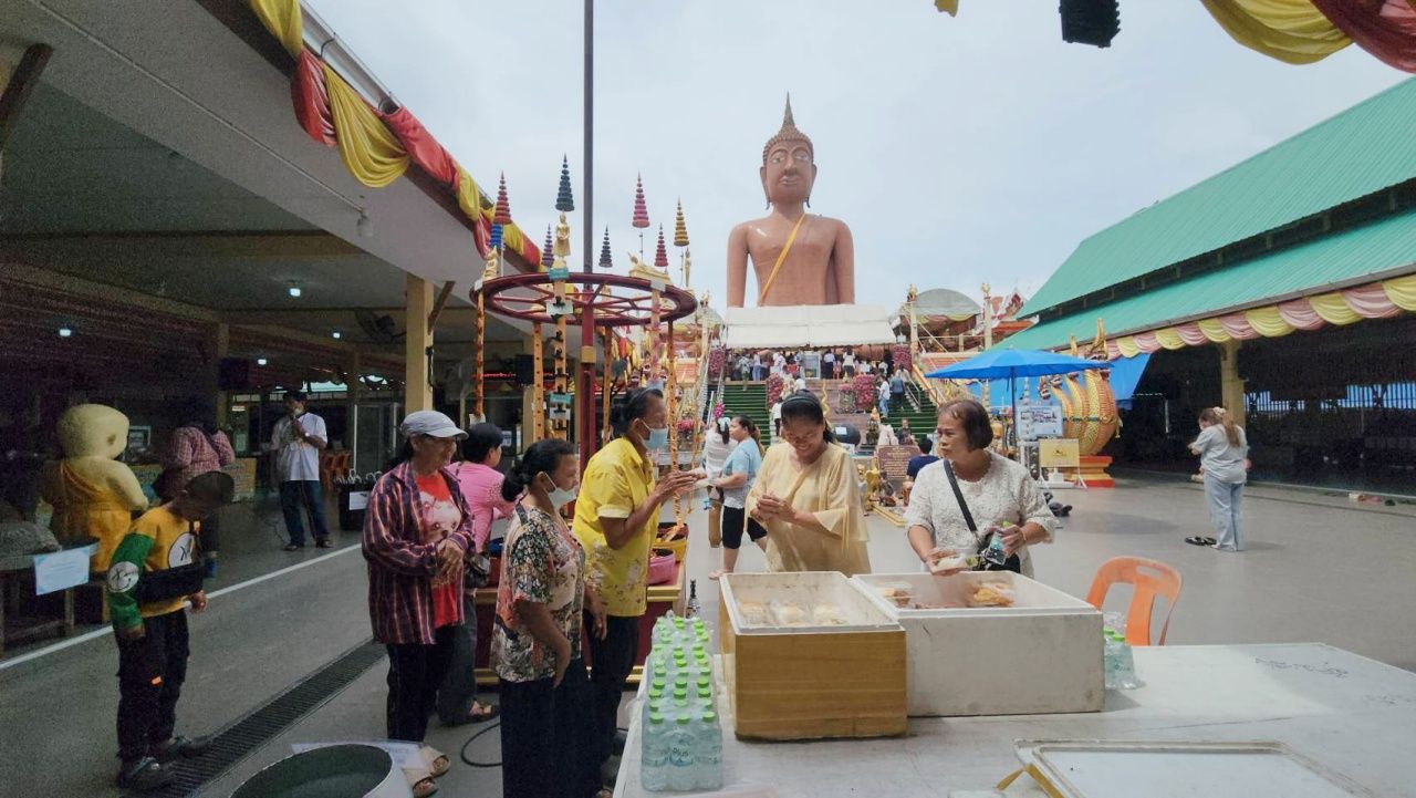 สำหรับบรรยากาศการทำบุญไหว้พระเป็นไปอย่างคึกคัก ผู้คนเดินทางมาจำนวนมาก นอกจากนี้ยังมี นางวาสนา ใจแช่ม อายุ 60 ปี แม่ค้าขายข้าวแกง อยู่ กทม. ได้เดินทางมาร่วมบุญ นำอาหารมาถวายพระได้ฉันกันทั้งวัด และยังทำข้าวกล่องมาแจกจ่ายให้กับสาธุชนที่เดินทางมาทำบุญได้กินอิ่มกันอย่างทั่วถึง