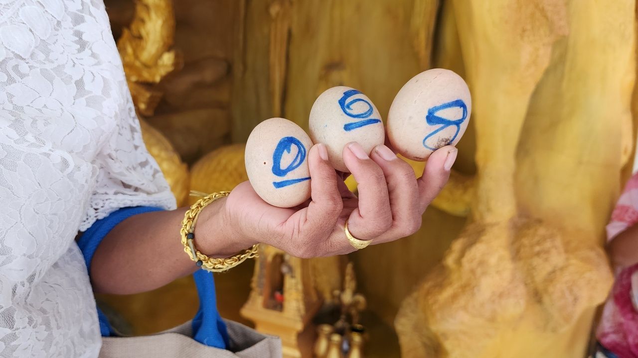 นอกจากนี้ นางทองใบ ยังล้วงไหเสี่ยงโชคต่อหน้าองค์ท้าวเวสสุวรรณ ทั้งร่างยักษ์และร่างมนุษย์ เพื่อหาเลขเด็ดให้ได้ลุ้นในงวดนี้อีกด้วย ซึ่งในครั้งนี้ได้เลข 068