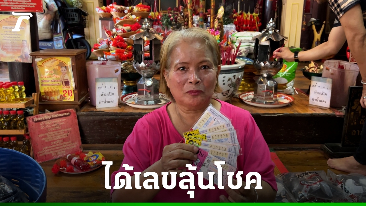 หญิงดวงเฮง นำรองเท้าแตะ 58 คู่ มาแก้บน "ไอ้ส้มฉุน" วัดทรงเสวย หลังถูกลอตเตอรี่เลขท้าย 2 ตัว 20 ใบ รับทรัพย์ 4 หมื่นบาท ไม่พลาดล้วงไหเสี่ยงทายนำ "เลขเด็ด 1/10/68" ไปลุ้นอีกงวด