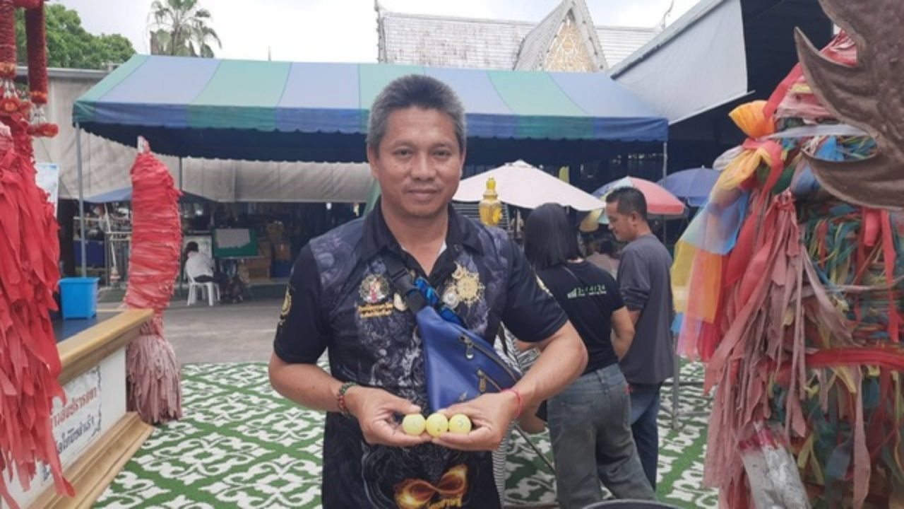 ส่วนทางด้านนายธีรวัตร์ วาหะมงคล ได้นำผลไม้ 5 อย่าง พร้อมด้วยเครื่องเซ่นไหว้ชุดใหญ่มาแก้บนท้าวเวสสุวรรณหลังได้โชคก้อนใหญ่สามารถปลดหนี้ได้หลังจากถูกรางวัลในงวดที่ผ่านมา