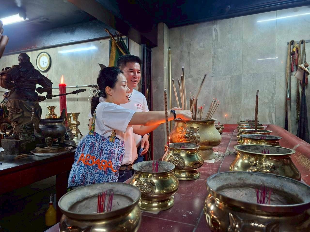 จากนั้นได้เข้าไปกราบไหว้เทพเจ้ากวนอู องค์เทพประธานศาลเจ้า พร้อมขอพรให้งานประเพณีถือศีล-กินผักประจำปี 2568 ให้สำเร็จลุล่วงไปด้วยดี ก่อนจะออกมาจุดประทัดถวายด้านหน้าศาลเจ้า พร้อมกับโชว์เลขเด็ดหางประทัด 34, 498, 227 ขณะที่เลขที่ศาลเจ้า 199 ซึ่งผู้ว่าฯ บอกว่าดวงใครดวงมันแล้วแต่โชคลาภวาสนา