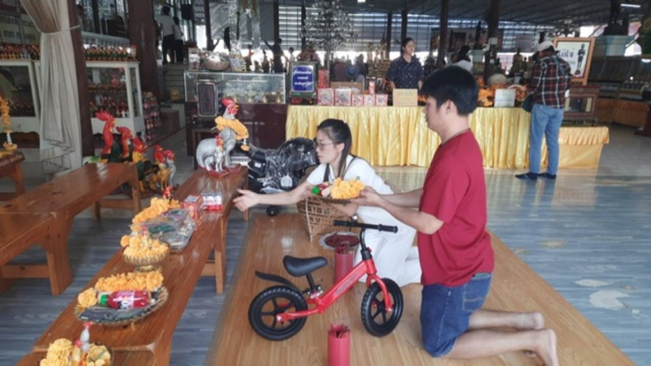 ด้านนางสาวสมใจ เสามั่น เดินทางจาก กทม. นำรถจักรยานขาไถ พร้อมด้วยนมเปรี้ยว น้ำแดง และเครื่องเซ่นไหว้มาแก้บนกับไอ้ไข่วัดดอนใหญ่ หลังได้รับโชคถูกรางวัลในงวดที่ผ่านมา