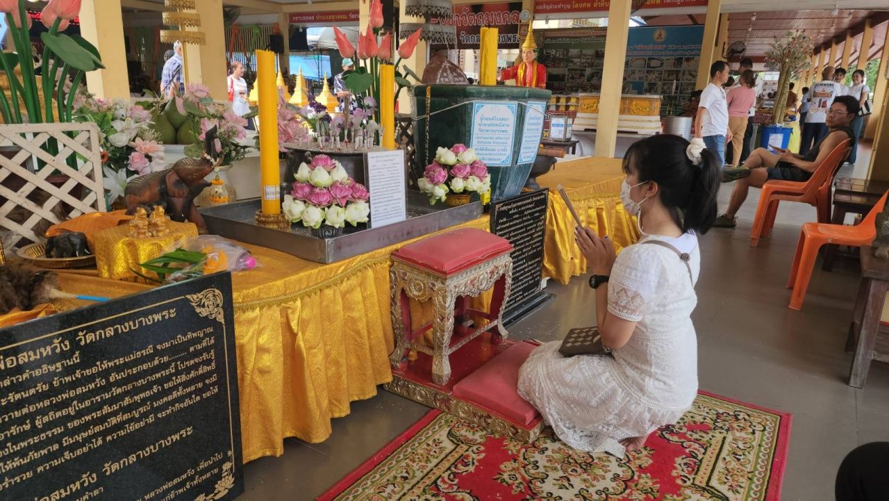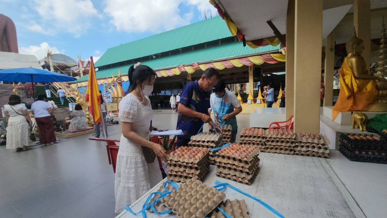 ครูสาวได้เลื่อนขั้นสมใจ นำไข่ไก่มาแก้บน “หลวงพ่อสมหวัง” วัดกลางบางพระ ก่อนกลับไม่พลาดขอ “เลขเด็ด” กลับไปลุ้นโชคงวด 1/12/68