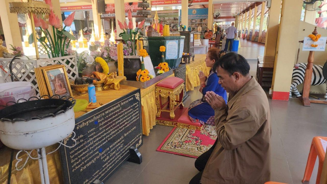 อดีตนายก อบต. พาครอบครัวแก้บน “หลวงพ่อสมหวัง” วัดกลางบางพระ หลังขายที่ดินได้สมใจ ก่อนกลับไม่พลาดจุดประทัด “เลขเด็ด” งวด 16/12/68