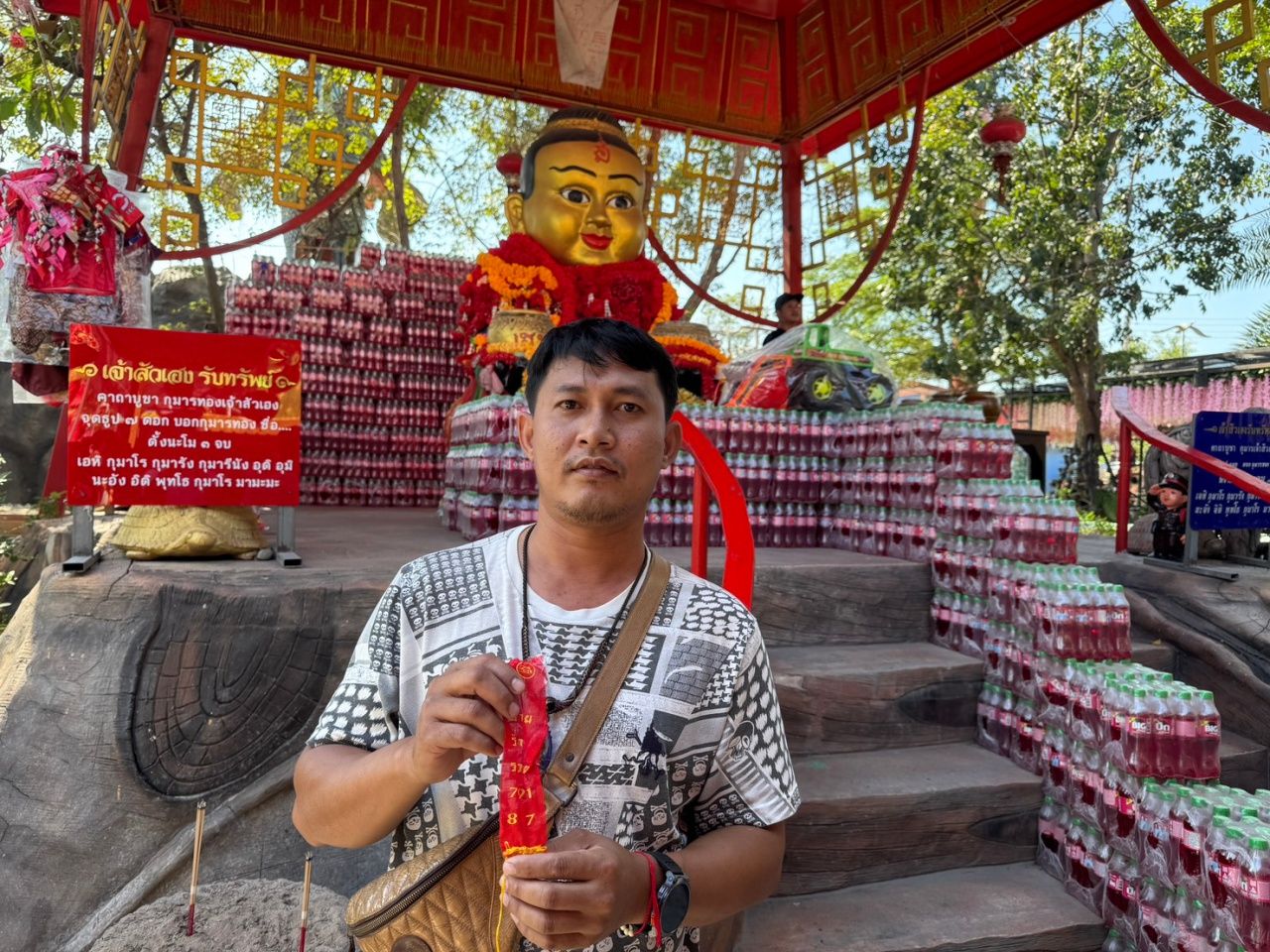หนุ่มช่างแอร์ เดินทางมาแก้บน “กุมารทองเจ้าสัวเฮง” อาศรมฤาษีเณร หลังรับโชคหลักแสน ก่อนกลับไม่พลาดขอเลขเด็ดกลับไปลุ้นอีกงวด