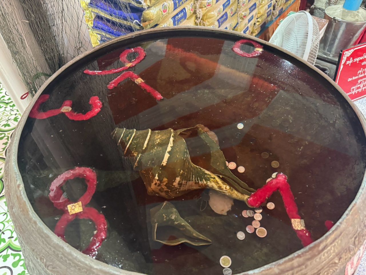 และมีหลายคนนำสิ่งของต่างๆ มาแก้บน ทั้งฟักทอง น้ำแดง ข้าวสาร น้ำ ขนม ของเล่น พร้อมเข้าร่วมพิธี ทั้งถวายข้าวสาร ยกพ่อแก่ ลงคาถาเงินล้านที่กระเป๋าสตางค์ และให้อาจารย์ฤาษีเณร ธาตุพุทธคุณลงนะ พระลักษณ์หน้าทอง เจิมมือเปิดดวงเศรษฐี รับน้ำสังข์นิลกาฬ เพื่อความเป็นสิริมงคล หลายคนยังได้ไปส่องเลขอ่างน้ำมนต์บนศาลาบุญช่วยเพื่อนำไปเสี่ยงโชค โดยเลขอ่างน้ำมนต์ได้แก่ 0 1 2 3 8 9 ซึ่งจะลอยจับกลุ่มกันเรียกว่าเทวะบันดาล