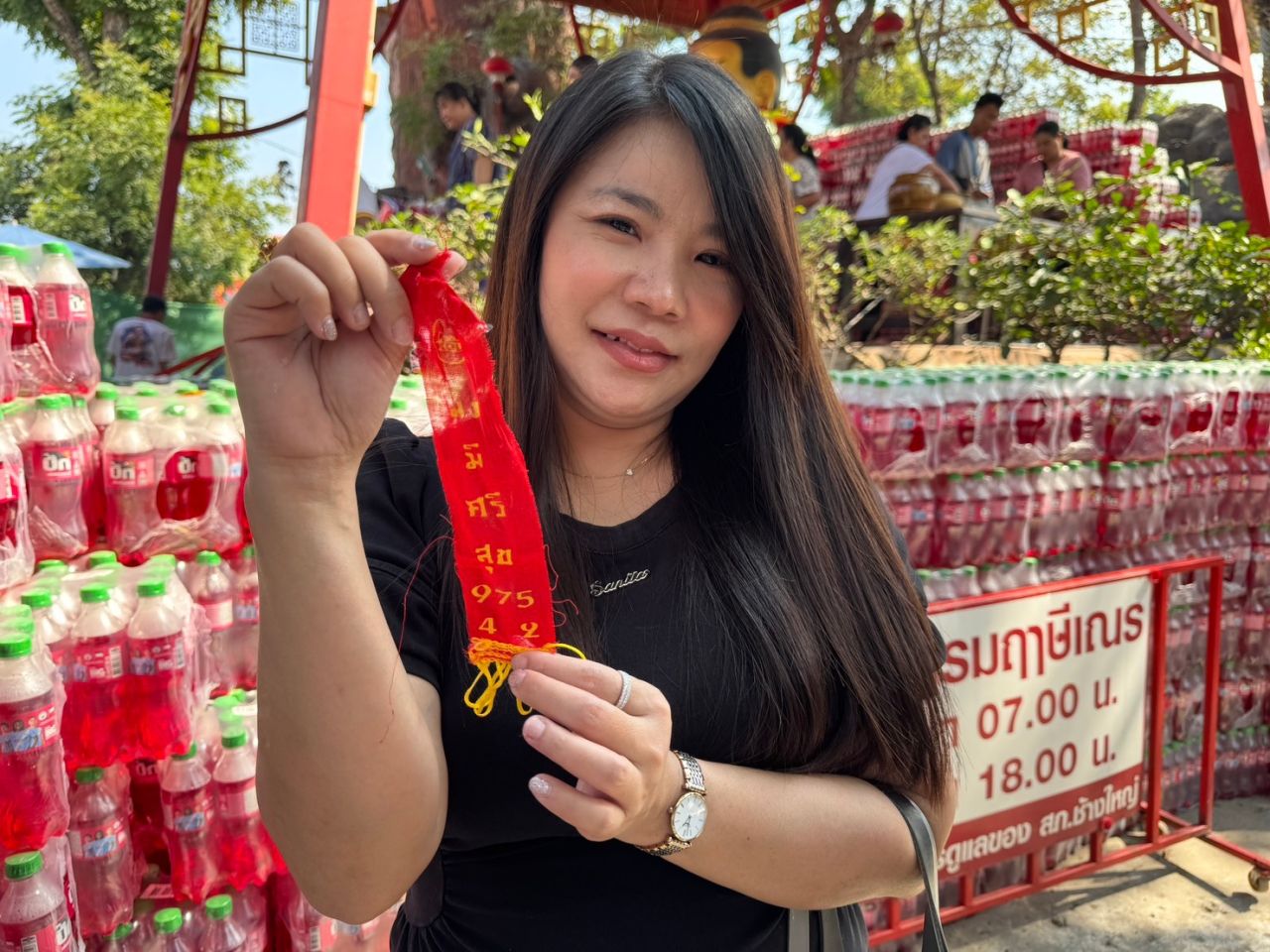 โดย น.ส.ฉัตรรัตน์ กล่าวว่าเดินทางมาอาศรมแห่งนี้ทุกปี ปีนึงสามสี่ครั้งมาขอเรื่องงานเรื่องเงินแล้วก็โชคลาภ ถูกหวยบ่อยเรื่องงานก็ได้ยอดทุกเดือน โดยครั้งนี้ก็นำประทัดมาจุดถวายเจ้าสัวเฮงและจะนำเลขหางประทัดไปเสี่ยงโชคงวดนี้ โดยเลขหางประทัดคือ 975 และ 42.