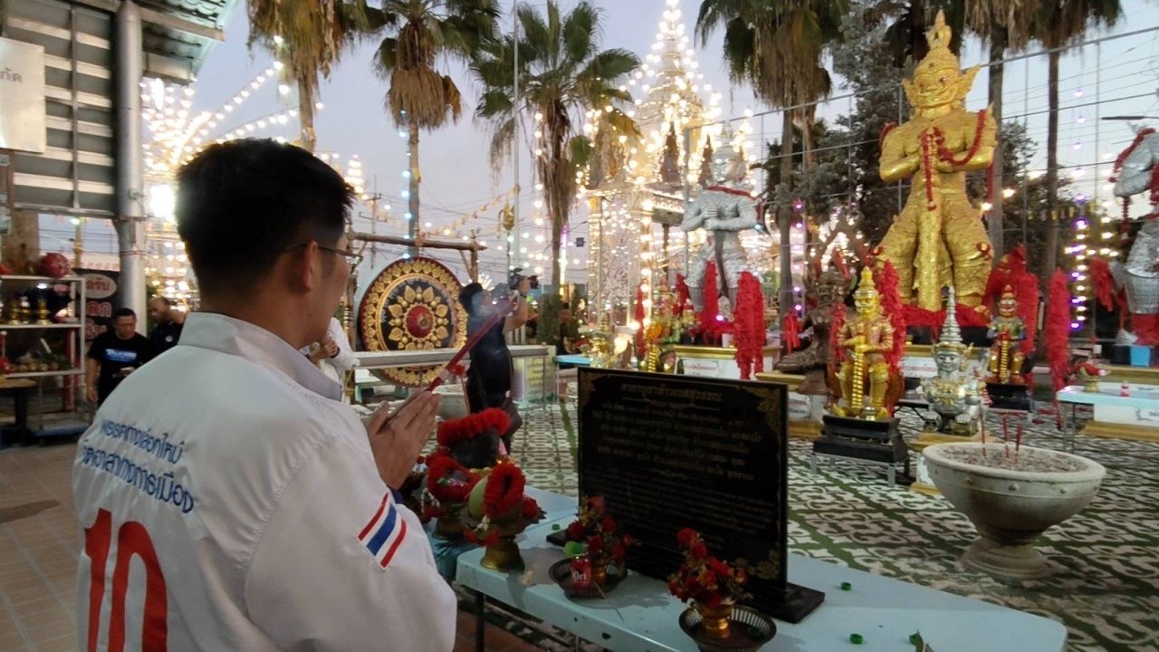 "เต้ มงคลกิตติ์" ขอพร "ท้าวเวสสุวรรณ" วัดดอนใหญ่ คอหวยฮือฮาลวงไหทองคำได้เลขเดียวกับเบอร์พรรค ไม่พลาดส่องไปเสี่ยงโชค 17/1/69