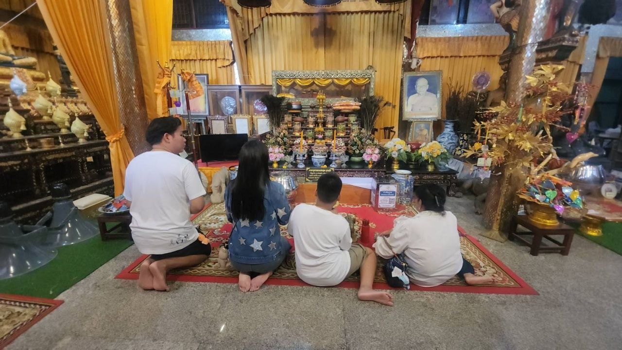 ก่อนจะได้เดินเข้าไปภายในศาลาสถานที่ประดิษฐานสรีระร่างของหลวงพ่อพุฒิ อดีตเจ้าอาวาส เกจิชื่อดังของวัดกลางบางพระที่มรณภาพไปแล้ว แต่สรีระร่างไม่เน่าเปื่อย ซึ่งบรรจุอยู่ในโลงแก้วเพื่อให้สาธุชนได้กราบไหว้ขอพรเป็นสิริมงคล ก่อนเดินทางกลับ