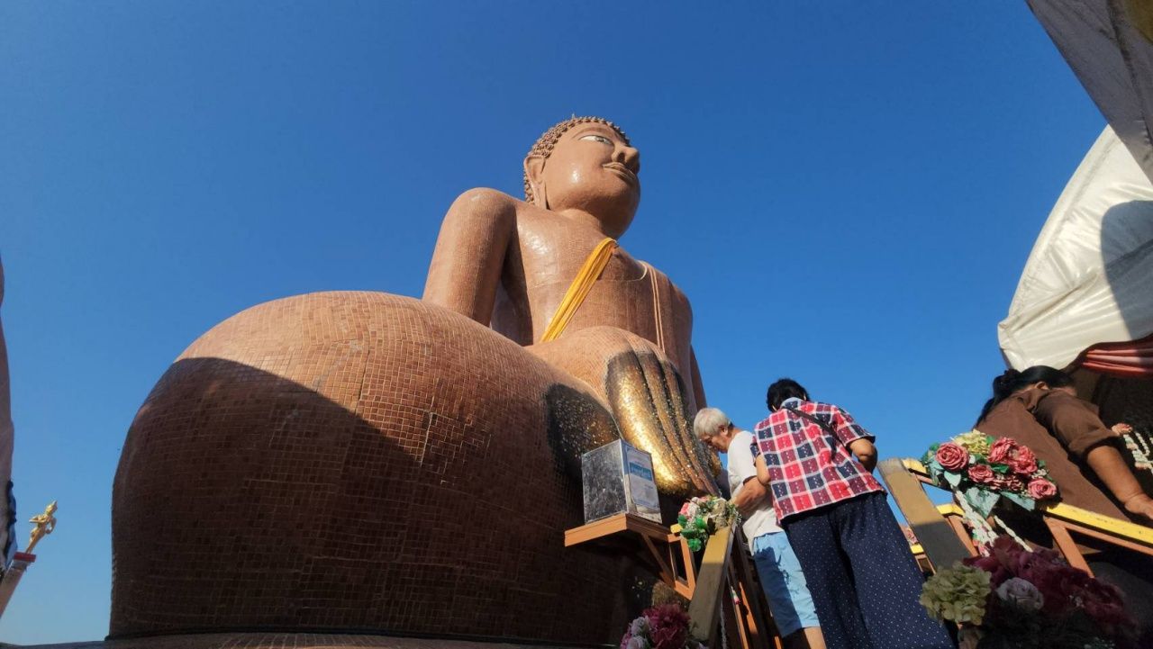 ขณะเดียวกัน นางอุษา คำหอม อายุ 65 ปี ชาวตำบลสัมปทวน อ.นครชัยศรี จ.นครปฐม ได้นำไข่ไก่จำนวน 300 ฟอง และน้ำดื่ม 12 โหล สมหวัง 1 ถาดใหญ่ ผลไม้ตามฤดูกาล ดอกไม้ธูปเทียน มาถวายแก้บนกับองค์หลวงพ่อสมหวัง พระพุทธรูปศักดิ์สิทธิ์ปางมารวิชัย หรือปางสะดุ้งมาร ที่มีขนาดความสูงกว่า 30 เมตร เป็นที่เคารพสักการะของทั้งชาวไทยและชาวต่างชาติ หากใครได้มาแล้วจะต้องมาไหว้ที่จุดรับพรกลางแจ้ง รวมไปถึงขึ้นไปปิดทองที่พระหัตถ์ขวา ขององค์หลวงพ่อสมหวังตามความเชื่อ