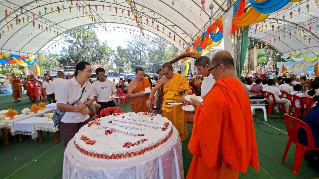 ทั้งนี้ พระครูวาทีพัชรโสภณ (ราชันย์ อริโย) ผู้ช่วยเจ้าอาวาสพระอารามหลวง วัดมหาธาตุ จ.เพชรบูรณ์ พระเกจิอาจารย์ดัง ได้มีการแบ่งเค้กครีมสตรอว์เบอร์รี 100 ปอนด์ แจกให้กับพุทธศาสนิกชน ศิษยานุศิษย์รับประทานเพื่อความเป็นสิริมงคล