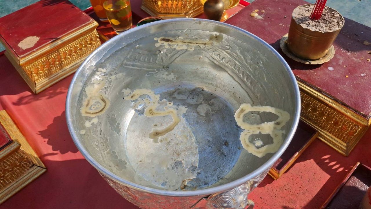 ชาวบ้านขอโชคลาภ "กุมารไอ้ไข่เหนือ" วัดหนองทอง ไม่พลาดส่อง "เลขเด็ด" จากขันน้ำมนต์ไปเสี่ยงโชค 1/2/69