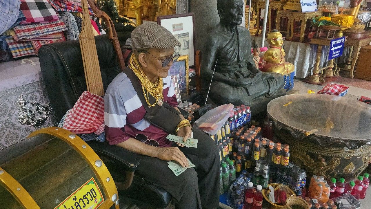 สาวตามรอยคนดวงดี ขอ “เลขเด็ด” ตาทองงิ้วราย วัดสว่างอารมณ์ ด้านหลวงพ่อแป๊ะชวนทำบุญปิดทองลูกนิมิตยักษ์