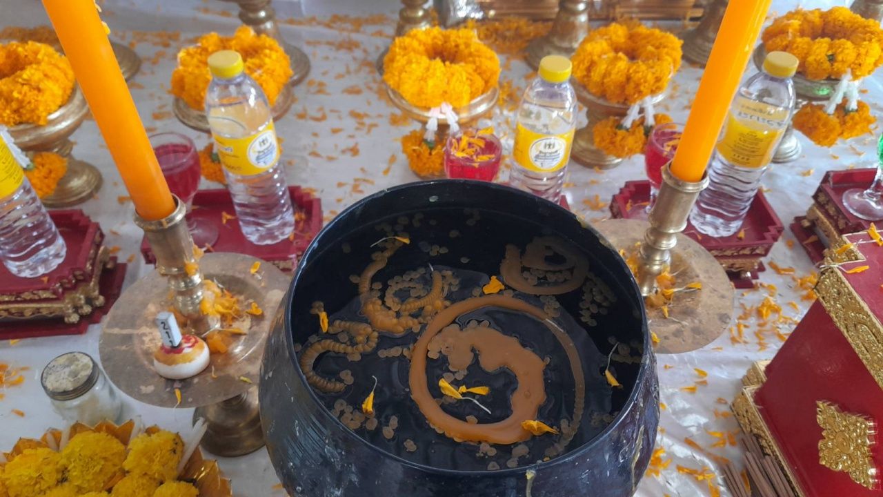 หลังเสร็จสิ้นพิธี คนที่ชอบตัวเลขก็พากันไปส่องที่ขันน้ำมนต์น้ำตาเทียนสีเหลือง เห็นเป็นตัวเลข 5-4-1-3 ส่วนเลขธูปเสี่ยงโชค จุดได้เลข 211, 112 นอกจากนี้ พ่อจ้ำยังโชว์ขันน้ำที่ทำพิธีที่บ้าน เห็นเป็นตัวชัดเจนคือ 6-4-1-2 ซึ่งก็มีการนำไปจับคู่เลข เช่น 64, 46, 12, 21 หวังได้เฮกันในงวดวันที่ 1 ก.พ. 69