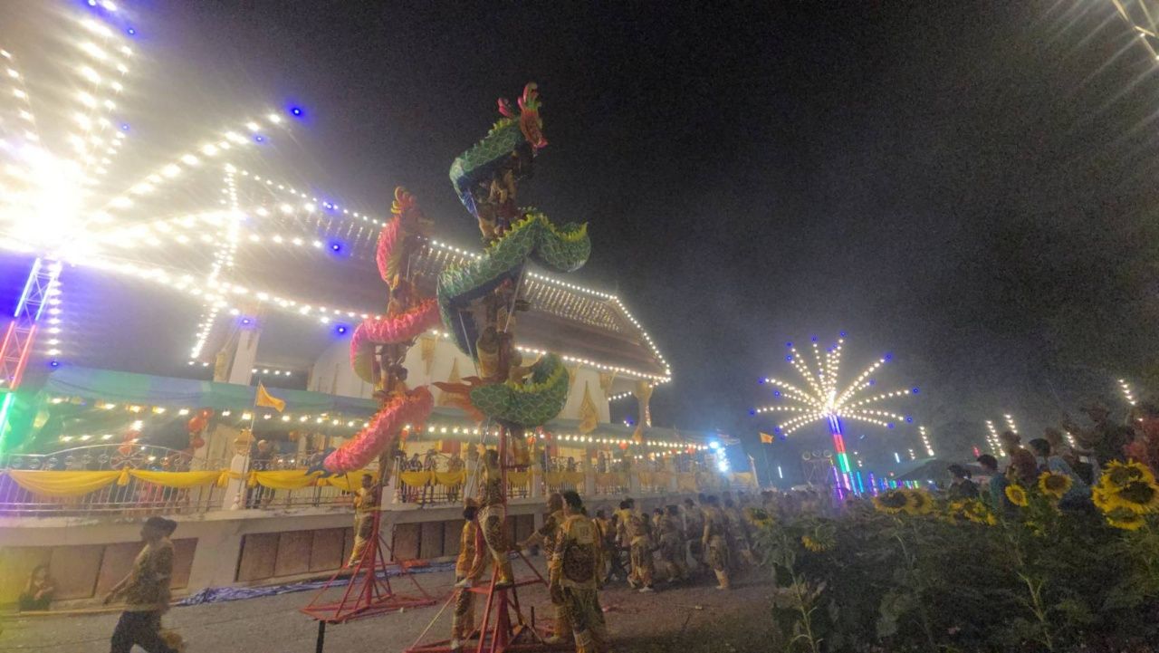 วันที่ 3 มีนาคม 2569 ผู้สื่อข่าวรายงานว่า ที่วัดสว่างอารมณ์ แคแถว ต.ขุนแก้ว อ.นครชัยศรี จ. นครปฐม เอลายไทย พร้อมคณะได้นำคณะสิงโต มังกรทอง ชุดใหญ่ คณะศิษย์หลวงพ่อแป๊ะ ที่ใช้คนแสดงกว่า 100 คน ซึ่งมีมังกรความยาว 30 เมตร 2 ตัว สิงโต 5 ตัว หัวสิงโต 5 หัว พร้อมเครื่องตีเป่าชุดใหญ่ มากราบไหว้ขอพรหลวงพ่อแป๊ะ และเปิดการแสดงให้สาธุชนที่มาปิดทองลูกนิมิต 9 วัด 99 ลูก มอบให้วัดยากจน 9 วัด 9 จังหวัด และประชาชนที่มาเที่ยวชมสวนดอกทานตะวัน และชมไฟประดับล้านดวง ซึ่งจัดทำเป็นสะพานจำลอง โกลเด้นเกต ท่ามกลางสาธุชนที่มารอชมจำนวนมาก