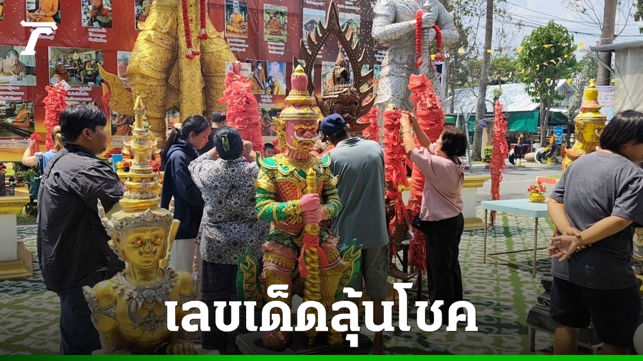 "ท้าวเวสสุวรรณ" วัดดอนใหญ่ให้โชค 4 งวดติด แม่ค้าออนไลน์ศรัทธานำเครื่องเซ่นไหว้มาแก้บน พร้อมจุดธูปเสี่ยงทายนำ "เลขเด็ด" กลับไปลุ้นรวย