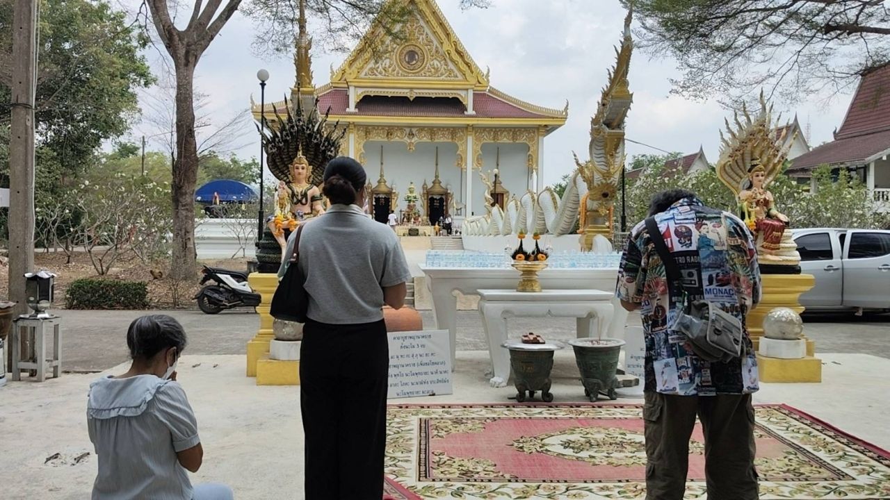 คนดวงดีนำของมาถวายแก้บน “แม่ตะเคียนทอง” วัดบึงบาประภาสะวัต จ.ปทุมธานี หลังมาขอพร กลับไปได้โชคหลักแสน จุดธูปได้เลขเด็ด งวด 1/4/69