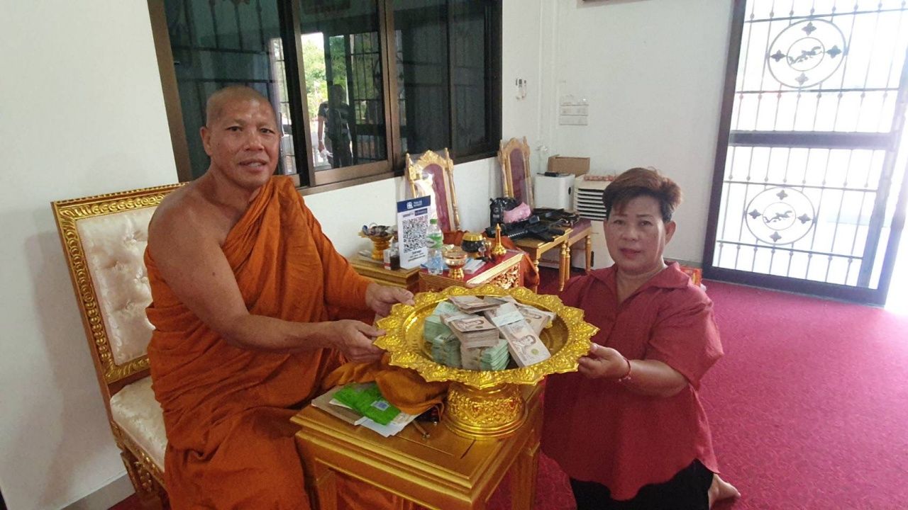 เมื่อเวลา 17.30 น. วันที่ 1 เมษายน 2569 ผู้สื่อข่าวเดินทางไปยังวัดห้วยสูบ ตำบลนามะตูม อำเภอพนัสนิคม จังหวัดชลบุรี หลังทราบว่ามีหญิงอายุ 56 ปี หอบเงินกว่า 5 แสนบาท มาถวายแก้บนให้กับหลวงพ่อใหญ่ เนื่องจากมีโชคถูกรางวัล และประสบความสำเร็จในชีวิต หลังมาบนบานขอโชคลาภกับหลวงพ่อใหญ่