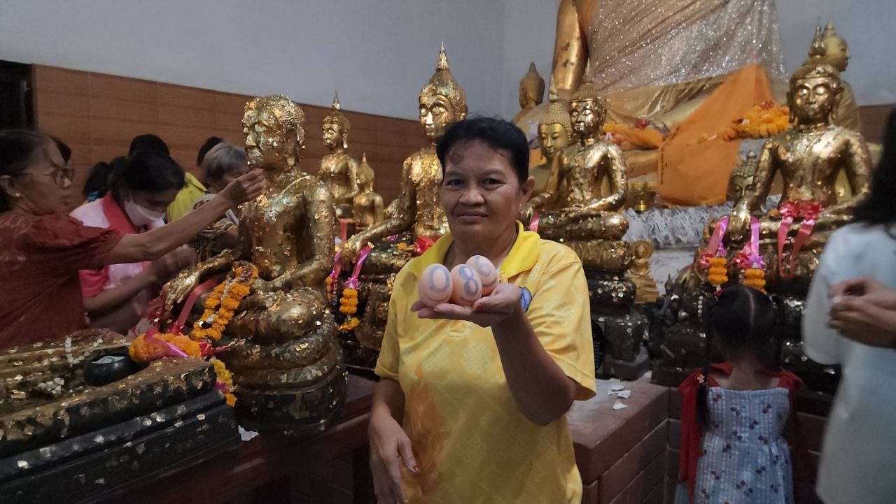 ทั้งนี้ ตนมีโอกาสขอเลขเด็ด เลขมงคลภายในโบสถ์ ด้วยการล้วงไข่ในไหทองคำ ปรากฏว่าได้เลข 086 เพื่อจะได้นำไปเสี่ยงโชคในงวด 16 เม.ย. 2569 นี้ เผื่อจะได้ลาภก้อนโต จะได้กลับมาทำบุญที่วัด