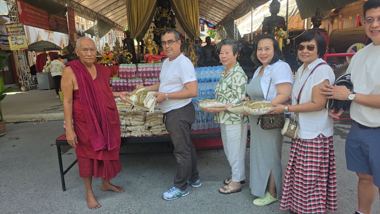 ขณะเดียวกัน อาจารย์นนธวัตฐ์ชัย มะวัจนุธูร อายุ 62 ปี หมอจัดกระดูกชื่อดังเปิดหลายสาขาที่ กทม.และภูเก็ต เดินทางมาพร้อมครอบครัว แม่ ภรรยาและบุตร พร้อมกับนำข้าวสาร 100 ถุง น้ำดื่ม 50 แพ็ค น้ำแดง 50 แพ็ค มาถวายขอพร “หลวงพ่อแป๊ะ” และ พระเงินพระทอง โดยตั้งไว้ที่ด้านหน้าองค์หลวงพ่อพระเงินพระทองจำลอง ด้านหน้าทางขึ้นศาลาการเปรียญก่อนที่จะขึ้นไปกราบไหว้องค์จริงบนศาลาการเปรียญ จุดธูปเทียนถวายดอกไม้และบอกกล่าวในการนำมาถวายครั้งนี้