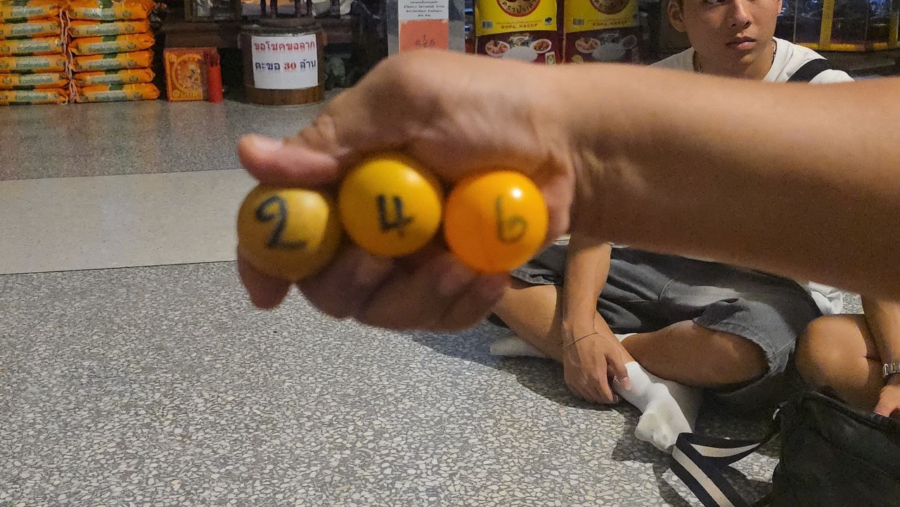 จากนั้นทำการล้วงลูกไข่ออกมา 3 ลูก ปรากฏว่าได้เลข 246 นำโชว์ให้ดู ก่อนที่จะลงไปกราบไหว้ขอพรหลวงพ่อแป๊ะอีกครั้ง โดยหลวงพ่อแป๊ะได้มอบวัตถุมงคล และผ้ายันต์ให้ปกป้องคุ้มครองและทำการค้าให้รวยสมใจ ก่อนเดินทางกลับ.