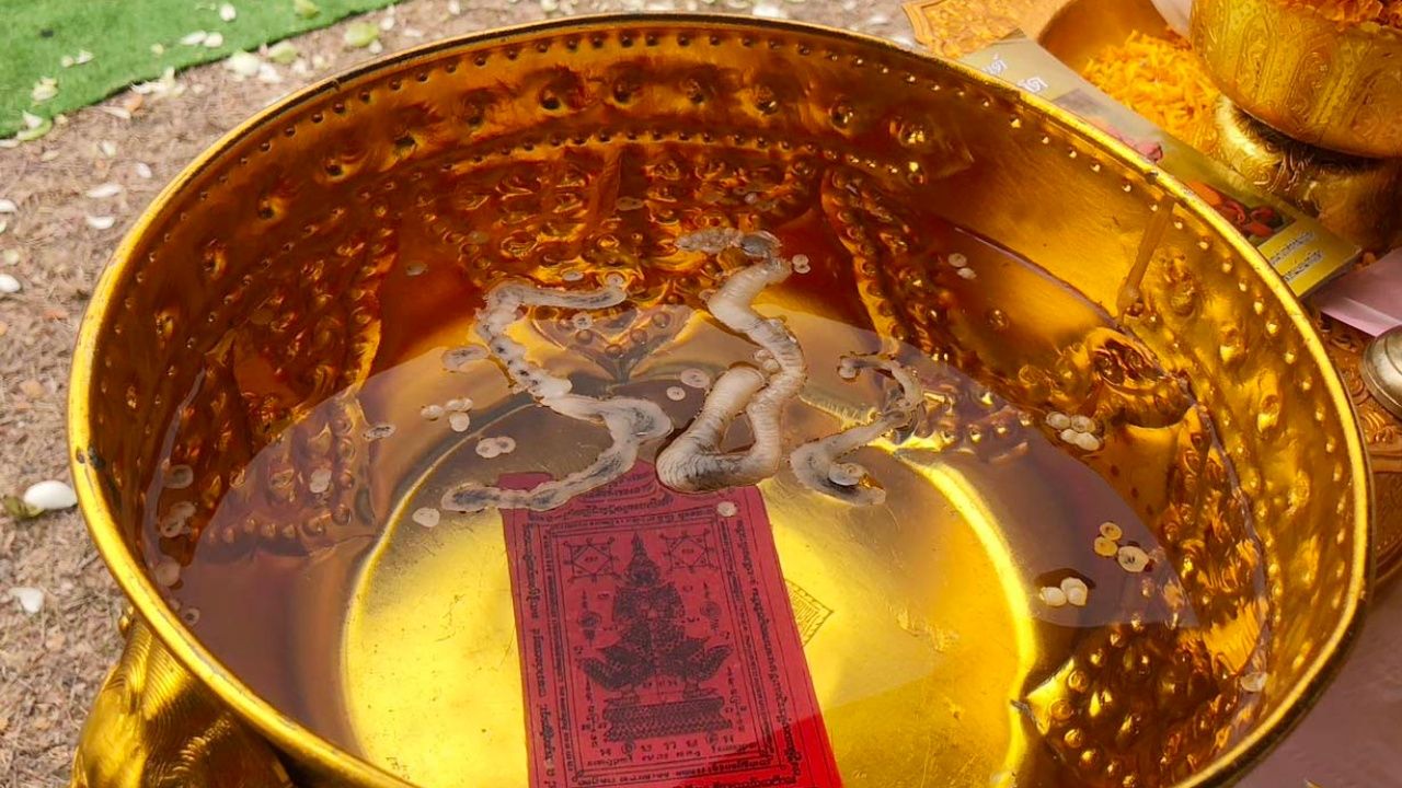 ทั้งนี้ หลังพราหมณ์นำทุกคนประกอบพิธีบวงสรวงด้วยความมุ่งมั่น ตั้งใจ ด้วยจิตใจและความศรัทธาอันบริสุทธิ์แล้วกลับปรากฏเป็นเลขในขันน้ำมนต์ ซึ่งสามารถมองเห็นอย่างชัดเจนเป็น เลข 5, 3 และ 2 และสร้างความฮือฮาให้กับผู้มางานพิธีอย่างมาก หลายคนเชื่อว่าองค์ปู่มาให้โชค