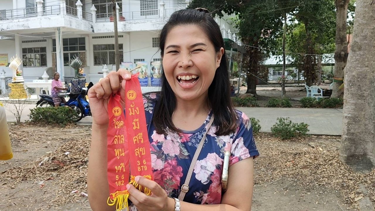 คนดวงเฮง เดินทางมาแก้บน "แม่ตะเคียนทอง" วัดดอนใหญ่ หลังได้โชคถูกรางวัล ด้านหญิงคำขอสมหวัง น้องสาวหายป่วยใน 7 วัน จุดประทัดถวาย "ไอ้ไข่" นำเลขเด็ดงวดนี้ 2/5/69 กลับไปลุ้นรวย
