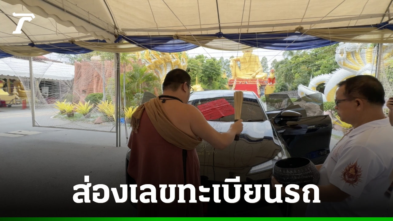 หนุ่มนักธุรกิจชาวจีน นำรถไฟฟ้าป้ายแดงมาเจิมที่ "อาศรมฤาษีเณร" เพื่อความเป็นสิริมงคล คอหวยไม่พลาดส่องทะเบียนรถหวังนำ "เลขเด็ด" ไปเสี่ยงโชค 2/4/69