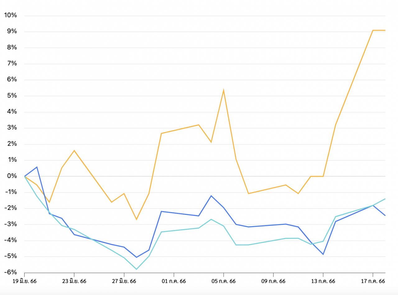 ว่ากันไป นี่อาจเป็นสาเหตุที่ทำให้ หุ้นที่เกี่ยวข้องกับการเมือง ตัวสำคัญ อย่าง SIRI หรือ บริษัท แสนสิริ จำกัด (มหาชน) ภูมิหลังธุรกิจที่มีความเกี่ยวโยงใยกับ "เศรษฐา ทวีสิน" อย่างตัดไม่ขาด แม้จะประกาศวางมือการบริหารไปหลายเดือนแล้ว พบแสนสิริ มีเคลื่อนไหวน่าสนใจ ทั้งก่อนและหลังการเลือกตั้ง รวมถึงตลอดช่วงหลายวันที่ผ่านมา และหากย้อนไป 5 วันทำการก่อนหน้า หุ้นแสนสิริ ก็ปรับตัวขึ้นมาแล้วกว่า 9%