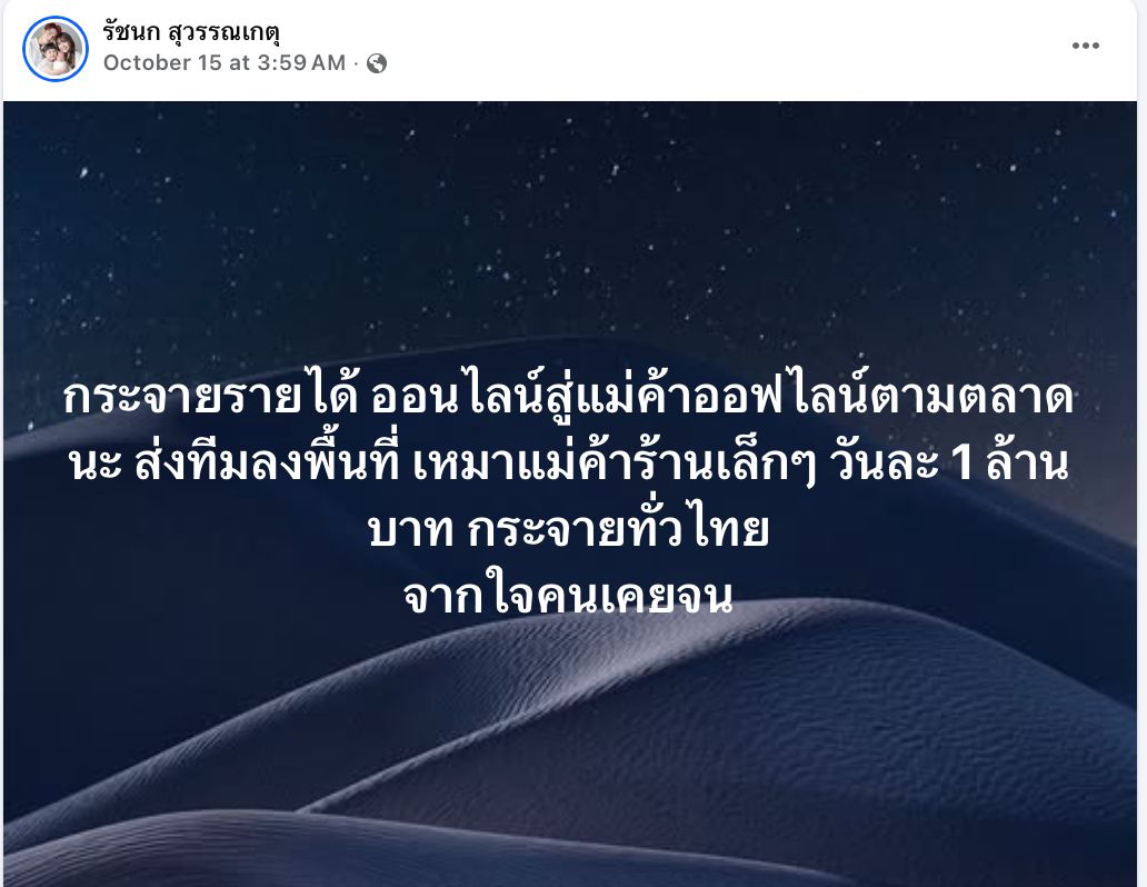 ล่าสุดเธอกำลังต่อยอดความสำเร็จนี้สู่โปรเจกต์ใหญ่ในรูปแบบ “มหกรรมไลฟ์สดระดับประเทศ” ที่ตั้งใจจะยกระดับอาชีพแม่ค้าออนไลน์ สร้างคอมมูนิตี้การค้ารูปแบบใหม่ และกระจายโอกาสให้คนตัวเล็กทั่วประเทศได้มีพื้นที่โชว์ศักยภาพของตัวเอง