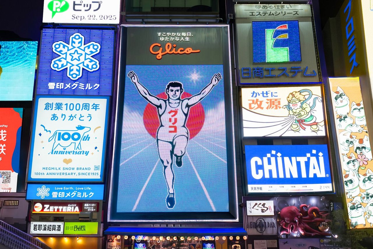 ในปี 1935 กูลิโกะเริ่มใช้ บิลบอร์ดยักษ์ “Glico Man” หรือ (Goal-in Mark) โดยติดตั้งที่แรกใกล้กับประตูคามินาริมง ในย่านอาซากุสะของโตเกียว เขตชินไคจิของโกเบ และย่านโดทงโบริของโอซาก้า รวมถึงสถานที่อื่นๆ เพื่อเพิ่มการรับรู้ของแบรนด์ นักวิ่งในท่าชูมือเข้าเส้นชัยบนพื้นหลังสีฟ้าและเส้นทางวิ่งสีแดงป้ายนี้กลายเป็น “แลนด์มาร์กของเมือง” และเป็นหนึ่งในสัญลักษณ์ทางการตลาดที่ยืนยาวที่สุดในโลกจนถึงปัจจุบัน
