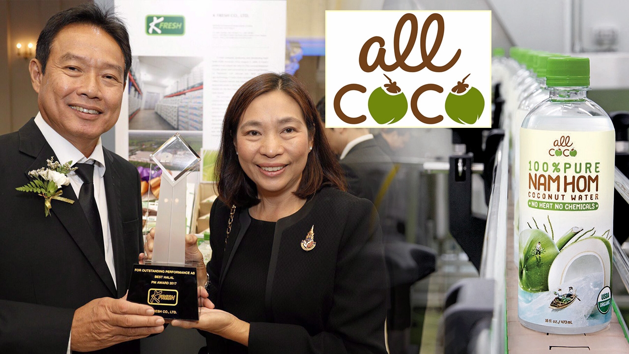 ผู้สื่อข่าวรายงานว่า เมื่อวันที่ 30 ส.ค.ที่ผ่านมา “บริษัท เค-เฟรช จำกัด” ผู้ผลิตและส่งออกมะพร้าวน้ำหอมไปต่างประเทศ และผลิตภัณฑ์มะพร้าวน้ำหอมแปรรูปในแบรนด์ All Coco ได้รับรางวัล Prime Minister’s Export Award 2017 หรือรางวัลผู้ส่งออกดีเด่นในสาขา The Best Halal จากพลเอกประยุทธ์ จันทร์โอชา นายกรัฐมนตรี ในฐานะบริษัทผู้ผลิตมะพร้าวผลสดส่งออก และได้พัฒนาต่อยอดอุตสาหกรรมแปรรูปผลิตภัณฑ์มะพร้าวน้ำหอม อาทิ น้ำมะพร้าวน้ำหอม 100 เปอร์เซ็นต์ ที่ไม่ผ่านความร้อน ไอศกรีม ซอฟไอศกรีม และน้ำมะพร้าวเกล็ดหิมะ รวมทั้งได้เปิดร้านคาเฟ่มะพร้าว ภายใต้แบรนด์ “ออล โคโค” และผลิตภัณฑ์แปรรูปจากมะพร้าวอื่นๆ