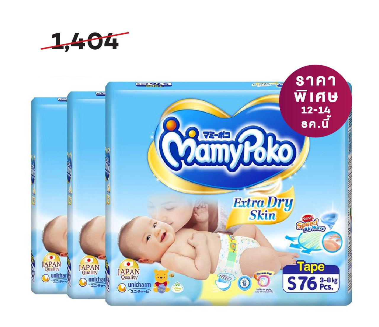 ลวดลายน่ารักสดใส นุ่มเป็นพิเศษ ไม่บาดผิวลูกน้อย สวมใส่ง่าย เคลื่อนไหวสะดวก เทปติด สะดวกทิ้ง ใช้งานได้ยาวนาน