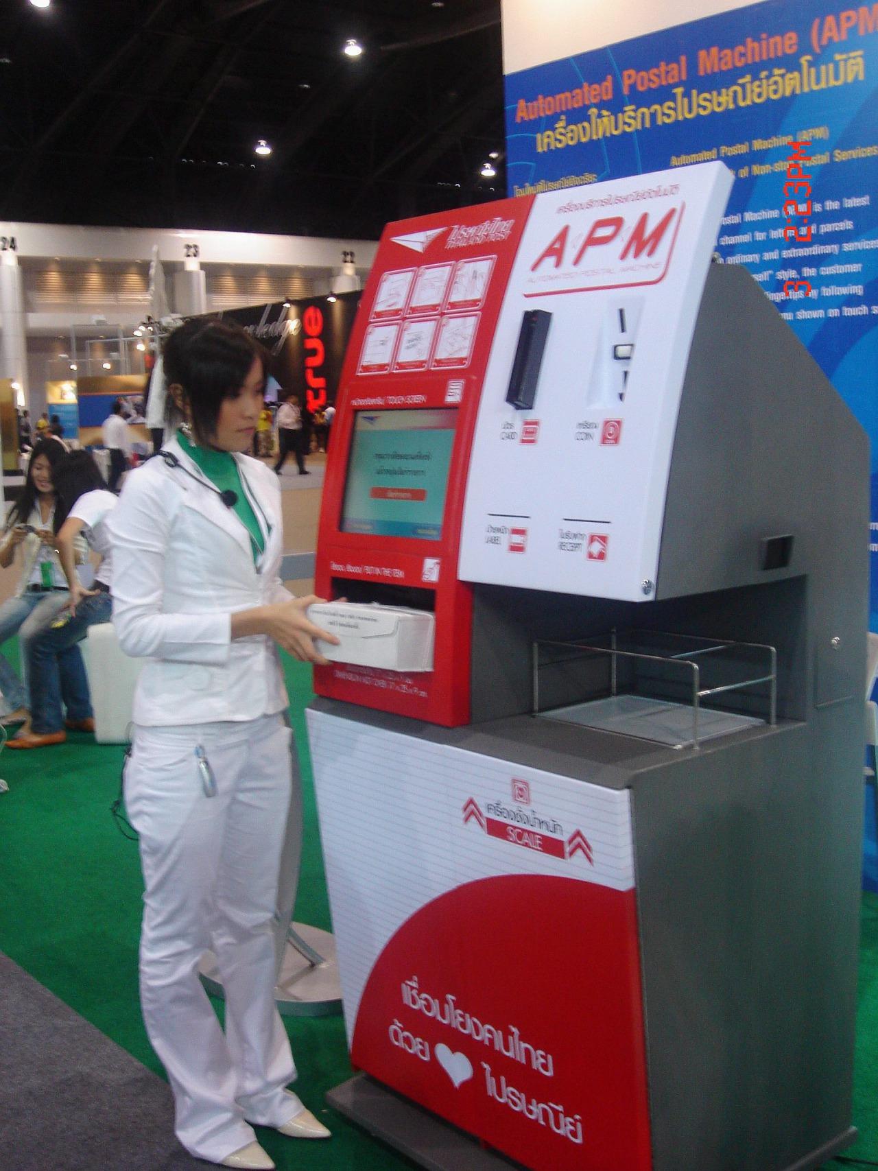 ด้าน นางสมร เทิดธรรมพิบูล กรรมการผู้จัดการใหญ่ บริษัท ไปรษณีย์ไทย จำกัด (ปณท) กล่าวว่า ปัจจุบันไปรษณีย์ได้ติดตั้งเครื่องบริการไปรษณีย์อัตโนมัติ (Automated Postal Machine: APM) เพื่อส่งไปรษณีย์ไปแล้ว 2 เครื่องที่สนามบินสุวรรณภูมิ บริเวณแถว D และ L ชั้น 4 อาคารผู้โดยสาร เพื่อรองรับผู้โดยสารให้ส่งสิ่งของที่ไม่สามารถนำขึ้นเครื่องบินได้กลับบ้านตัวเอง โดยมีค่าบริการในประเทศอยู่ที่ 50 บาท/ชิ้น ส่วนไปรษณีย์ภัณฑ์ที่จะส่งไปยังต่างประเทศจะมีค่าบริการที่ 450 บาท/ชิ้น ทั้งนี้สามารถส่งสิ่งของได้ทุกชนิด ยกเว้นสิ่งของที่ผิดกฎหมาย เช่น สิ่งมีชีวิต อาวุธปืนทั้งของแท้และของปลอม เป็นต้น โดยขณะนี้มีผู้ใช้บริการที่ยังไม่แพร่หลาย และไม่ได้รับความนิยม โดย ไปรษณีย์มีรายได้เฉลี่ย 10,000 บาท/ตู้/เดือน เท่านั้น