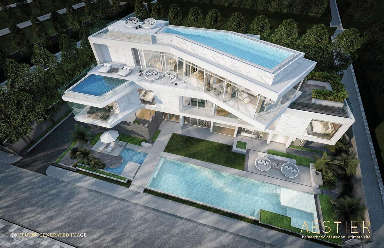 ทั้งนี้ แอสเทียร์เป็นบ้านที่มีพื้นที่ใช้สอยกว่า 2,400 ตารางเมตร พร้อมสิ่งอำนวยความสะดวกครบครัน อาทิ ลิฟต์ส่วนตัว, ฟิตเนส, Exclusive Lounge, อ่างจากุซซี, สระว่ายน้ำแบบชมวิวบนดาดฟ้า, สระว่ายน้ำด้านล่าง แบ่งเป็น 4 ส่วนหลัก คือ ชั้น 1 เป็นส่วนต้อนรับ ชั้น 2 ส่วนพักอาศัย 4 ห้องนอน ชั้น 3 ส่วน Multipurpose Area ซึ่งเป็นหัวใจหลักของบ้านที่จะมองเห็นวิวทะเลได้ 180 องศา