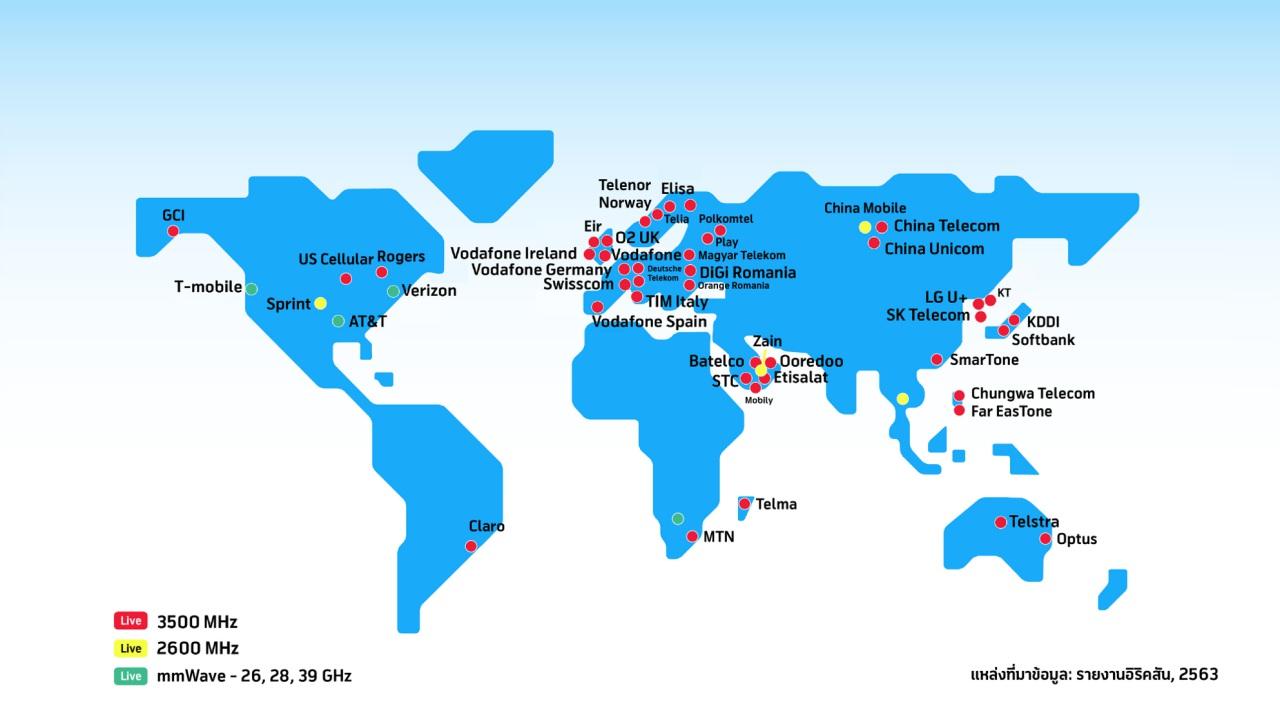 1. บริษัทโทรคมนาคมทั่วโลกมากกว่า 70% ใช้คลื่น 3500 MHz เป็นย่านความถี่หลักสำหรับ 5G รวมถึงสหรัฐอเมริกา ยุโรป ญี่ปุ่น และเกาหลีใต้ ซึ่งเป็นประเทศหลักในการให้บริการ และพัฒนาสู่ 5G จึงทำให้เกิดระบบนิเวศของ 5G คลื่น 3500 MHz ที่มากกว่าจากทั่วโลกเลือกใช้งาน 3500 MHz