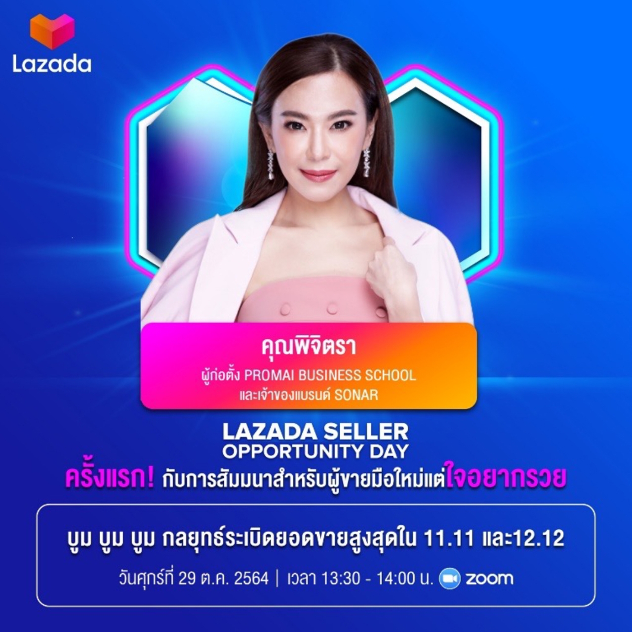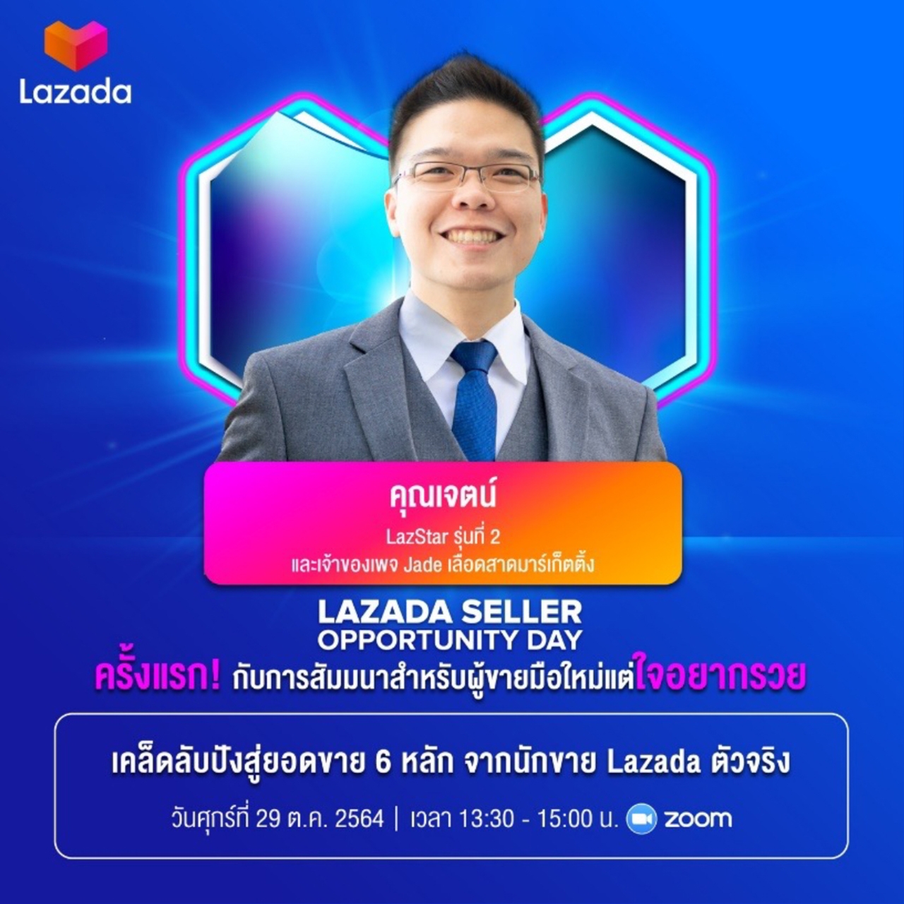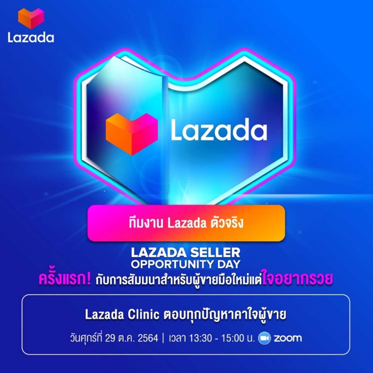 คงต้องยอมรับอย่างหนึ่งว่า ความสำเร็จในการทำธุรกิจในทุกวันนี้ เป็นเรื่องของคนที่มีองค์ความรู้และมองเห็นโอกาส ในฐานะแพลตฟอร์มที่ยืนเคียงข้างคนไทยพร้อมสนับสนุนทุกธุรกิจให้ก้าวไปข้างหน้าในทุกสถานการณ์ ลาซาด้า ได้หยิบยื่นโอกาสครั้งใหม่ผ่านการเติมองค์ความรู้ที่มีคุณค่าต่อผู้ประกอบการไทย และนักขาย โดยจัด Virtual Seminar หรืองานสัมมนาออนไลน์ขึ้น ในชื่อ ‘Lazada Seller Opportunity Day เปิดร้านปัง ยอดขายเปรี้ยงไปกับลาซาด้า’ อย่างเป็นทางการ เพื่อนำพาประสบการณ์ใหม่ และเปิดโอกาสทางธุรกิจผ่านแพลตฟอร์มลาซาด้า โดยครั้งนี้มาพร้อมกับองค์ความรู้ที่กลั่นกรองจากประสบการณ์ของกูรูชั้นนำระดับประเทศ ที่จัดเต็มกับเนื้อหาใน Session ต่างๆ แบบไม่มีกั๊ก