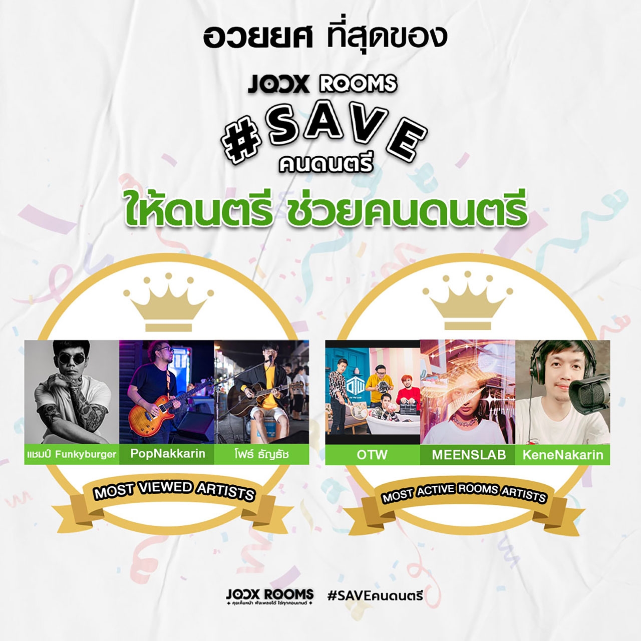 “ในฐานะแพลตฟอร์มที่เป็นตัวกลางระหว่างคนฟังเพลงและคนทำเพลง เราจึงคิดว่าในสถานการณ์การระบาดแบบนี้จะทำอย่างไรให้ผู้ใช้งานได้พบศิลปินที่รัก ได้มีความสุขกับการฟังเพลง หรือสนุกกับความบันเทิงได้จากที่บ้าน รวมถึงทำอย่างไรที่จะช่วยเหล่าศิลปิน และค่ายเพลงที่โดนผลกระทบ นั่นทำให้ JOOX ใช้แพลตฟอร์มสร้างสรรค์โปรเจกต์มากมาย เช่น จัด ‘JOOX FOR ARTISTS’ และ ‘JOOX ฟัง FROM HOME’ ขึ้นก่อนในช่วงแรก จนถึงการระบาดระลอกที่ 3 ที่รู้สึกว่าคนเองก็เริ่มโหยหาปาร์ตี้ แต่เราไม่สามารถไปไหนได้ ก็เลยเกิดเป็น ‘ผับทิพย์’ รวมถึง ‘JOOX #SAVEคนดนตรี’ ที่เปิดโอกาสให้นักดนตรี คนดนตรีทั่วประเทศที่คิดถึงการแสดงสดสมัครเข้ามา เพื่อคัดเลือกให้มาแสดงสดผ่านฟีเจอร์ของ JOOX ROOMS ซึ่งเป็นอีกหนึ่งแคมเปญที่ได้รับเสียงตอบรับดีมาก ทั้งฝั่งคนแสดง และจากฝั่งผู้ชม แต่สำหรับ JOOX เอง ก็ถือเป็นเครื่องยืนยันอย่างหนึ่งว่าเรายืนหยัดเคียงข้างคนดนตรีเสมอ ไม่ว่าจะในสถานการณ์ไหน”