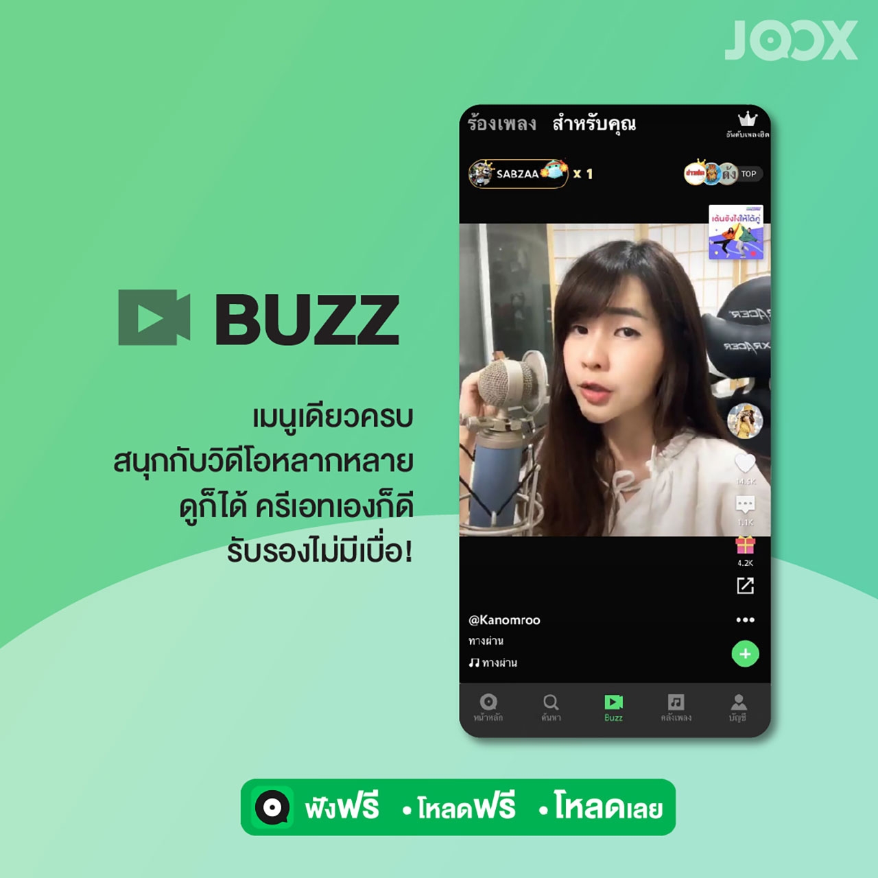 “วันนี้ความท้าทายสำหรับ JOOX ค่อนข้างสูงมาก โดยเฉพาะในยุคที่เทคโนโลยีพัฒนาขึ้นเรื่อยๆ แถมมีผู้เล่นใน Category หรือหมวดหมู่อื่นเข้ามาแย่งชิงเวลากับเรามากขึ้น ในขณะเดียวกันผู้ใช้งานเองก็สนใจที่จะลองใช้งานแอปพลิเคชันใหม่ๆ แม้เรื่องนี้จะไม่ได้ทำให้ยอดการใช้งานต่อวันของ JOOX ลดลง เรายังสามารถยึดหัวหาดได้อยู่ แต่ก็ต้องมาคิดมากขึ้นว่า เราจะทำอะไรเพิ่มเติมให้ตอบกับกระแสความนิยม ยกตัวอย่างเทรนด์การถ่ายวิดีโอสั้นที่กำลังมาแรงในช่วงที่เกิดโควิด-19 เพราะคนไม่ต้องเดินทางก็ฟังเพลงลดลง แต่หันมาชม-ถ่ายวิดีโอกันมากขึ้น เราก็ออก JOOX BUZZ ฟีเจอร์สร้างสรรค์คลิปวิดีโอสั้นที่ครบครัน ทั้งถ่าย ตัดต่อ ใส่เพลง และใส่ลูกเล่นมาตอบเทรนด์ตรงนี้อย่างรวดเร็ว”