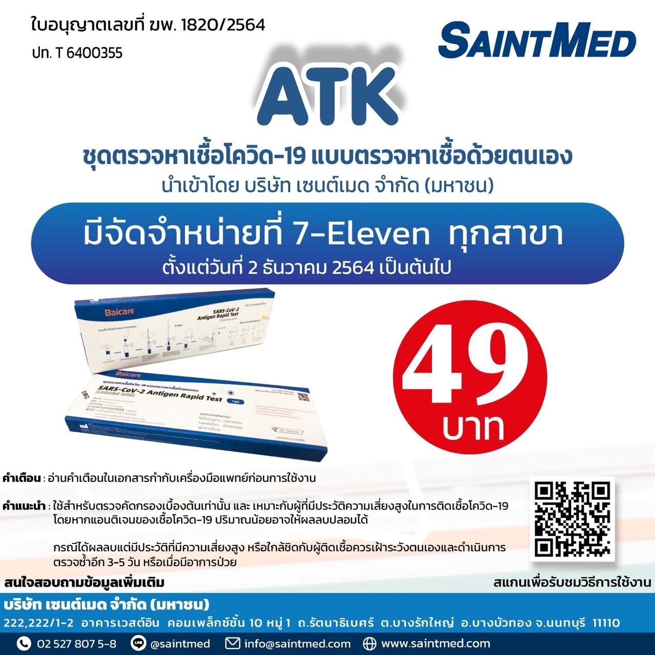 เซนต์เมด เร่งส่งชุดตรวจโควิดแบบ ATK ราคา 49 บาท ส่งขายในเซเว่น อีเลฟเว่น พร้อมคาดผลการดำเนินงานในปี 2565 คาดมีรายได้แตะ 1,800 ล้านบาท