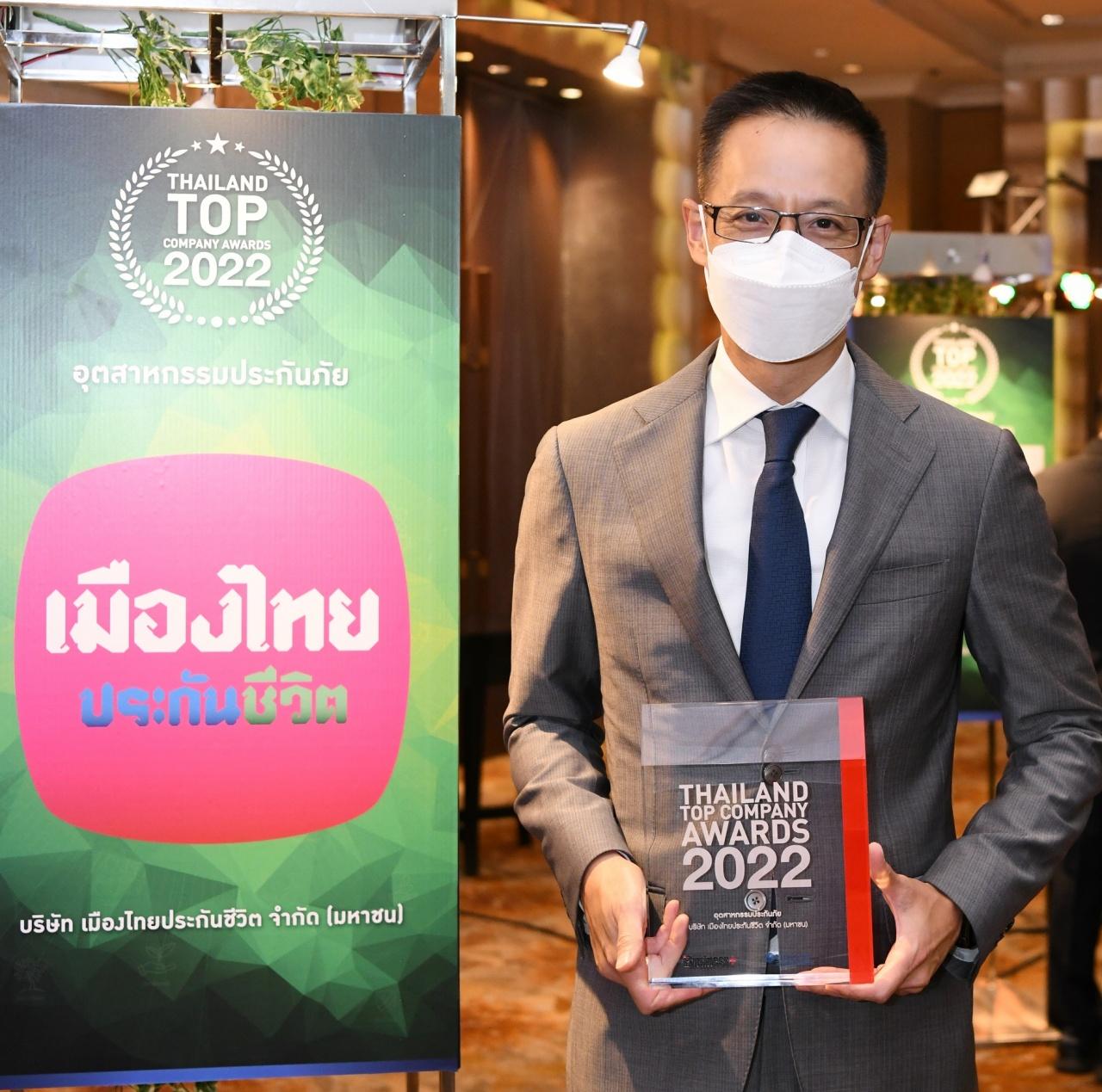 สาระ ล่ำซำ ประธานเจ้าหน้าที่บริหาร บริษัท เมืองไทยประกันชีวิต จำกัด (มหาชน) รับรางวัลสุดยอดองค์กรธุรกิจไทย THAILAND TOP COMPANY AWARDS 2022 ประเภทอุตสาหกรรมประกันภัย ต่อเนื่องเป็นปีที่ 4 ซึ่งเป็นรางวัลสูงสุดในธุรกิจประกันภัยในประเทศไทย ถือเป็นรางวัลอันทรงเกียรติที่นำมาซึ่งความภาคภูมิใจแก่บริษัทฯ ที่ประสบความสำเร็จและสะท้อนให้เห็นถึงการมีผลการดำเนินงานอันยอดเยี่ยม และมีความเป็นเลิศของบริษัท ณ โรงแรมอินเตอร์คอนติเนนตัล กรุงเทพฯ
