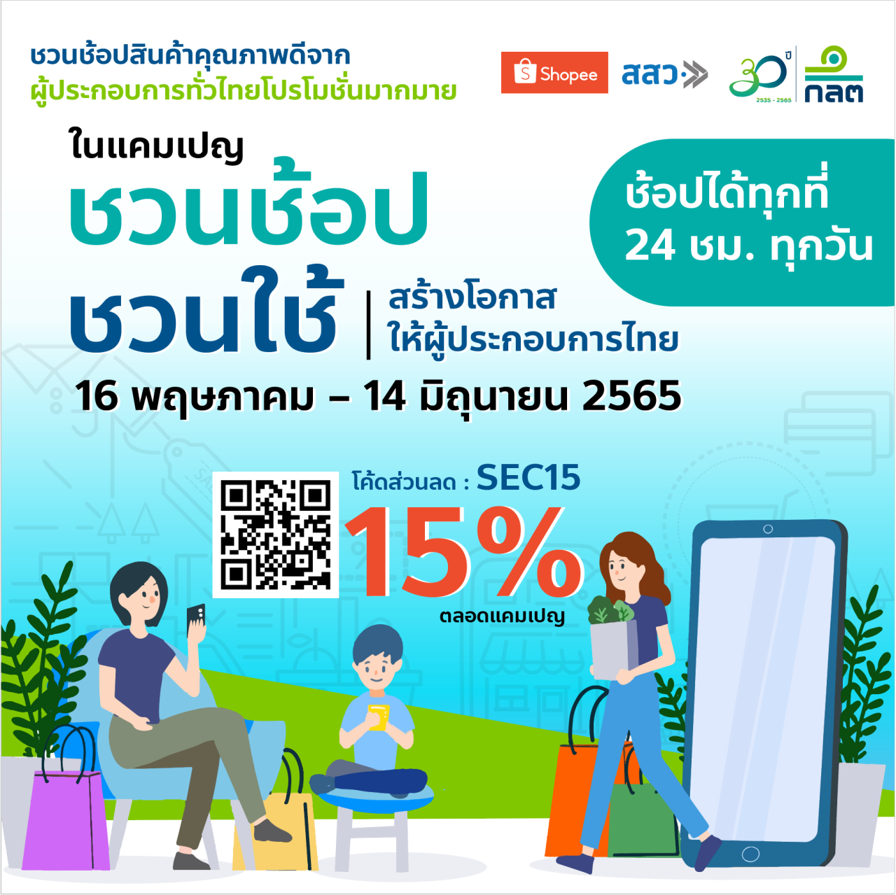 ก.ล.ต. จับมือ สสว. ผนึกกำลังเครือข่ายพันธมิตรภาครัฐและเอกชน จัดกิจกรรมครบรอบ 30 ปี ก.ล.ต. ชูแคมเปญ ชวนช็อป ชวนใช้ สร้างโอกาสให้ผู้ประกอบการไทย บนแพลตฟอร์ม Shopee หนุนผู้ประกอบการไทยกว่า 300 ราย สร้างรายได้ เสริมแกร่งธุรกิจเติบโตอย่างยั่งยืน พร้อมมอบส่วนลดพิเศษสำหรับผู้ซื้อสินค้าในแคมเปญระหว่างวันที่ 16 พ.ค. – 14 มิ.ย.65